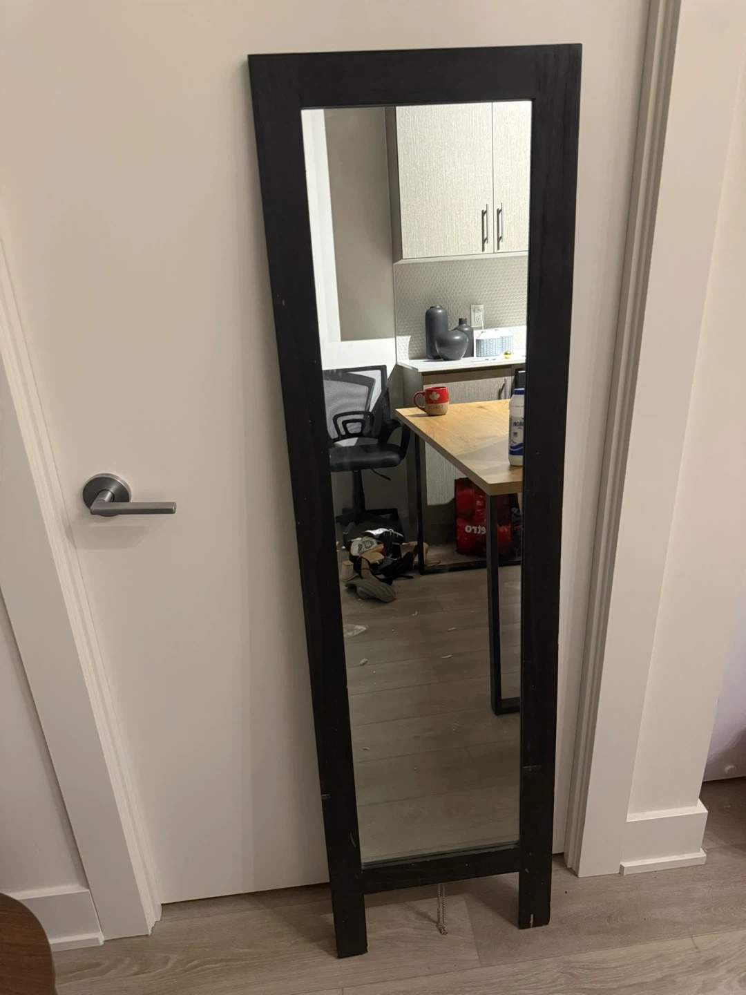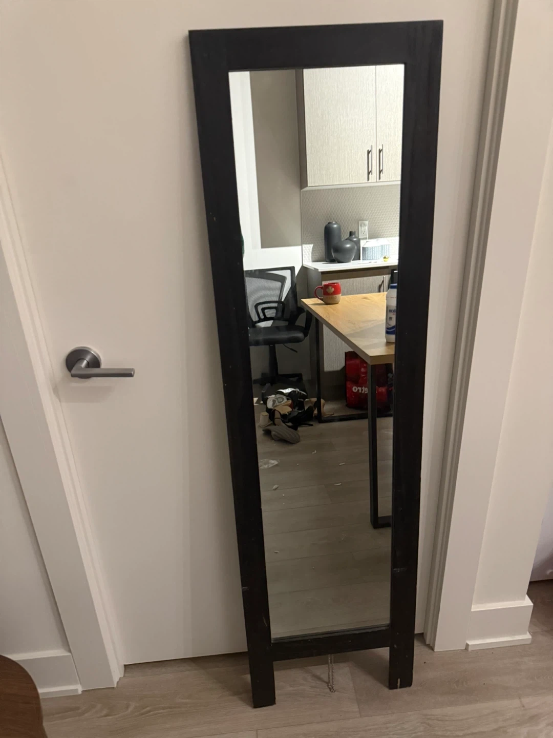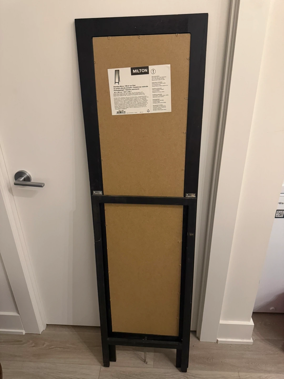 Selling a standing mirror with a black frame from Milton. It's in great shape and ready to brighten up any room! The dimensions are approximately 16 in x 63.7 in.
