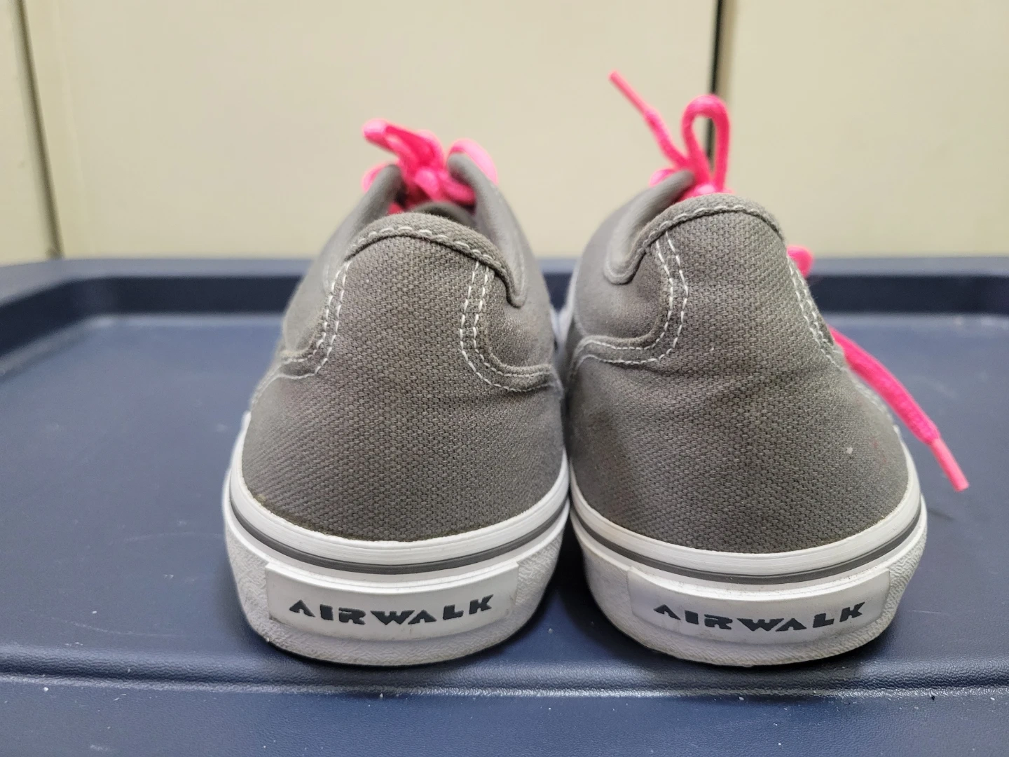 Selling a pair of Airwalk gently used almost like new canvas sneakers. Wore one time. They are gray with white accents and have bright pink laces. Will include extra color laces and original laces. These sneakers are in good condition and ready for a new owner!