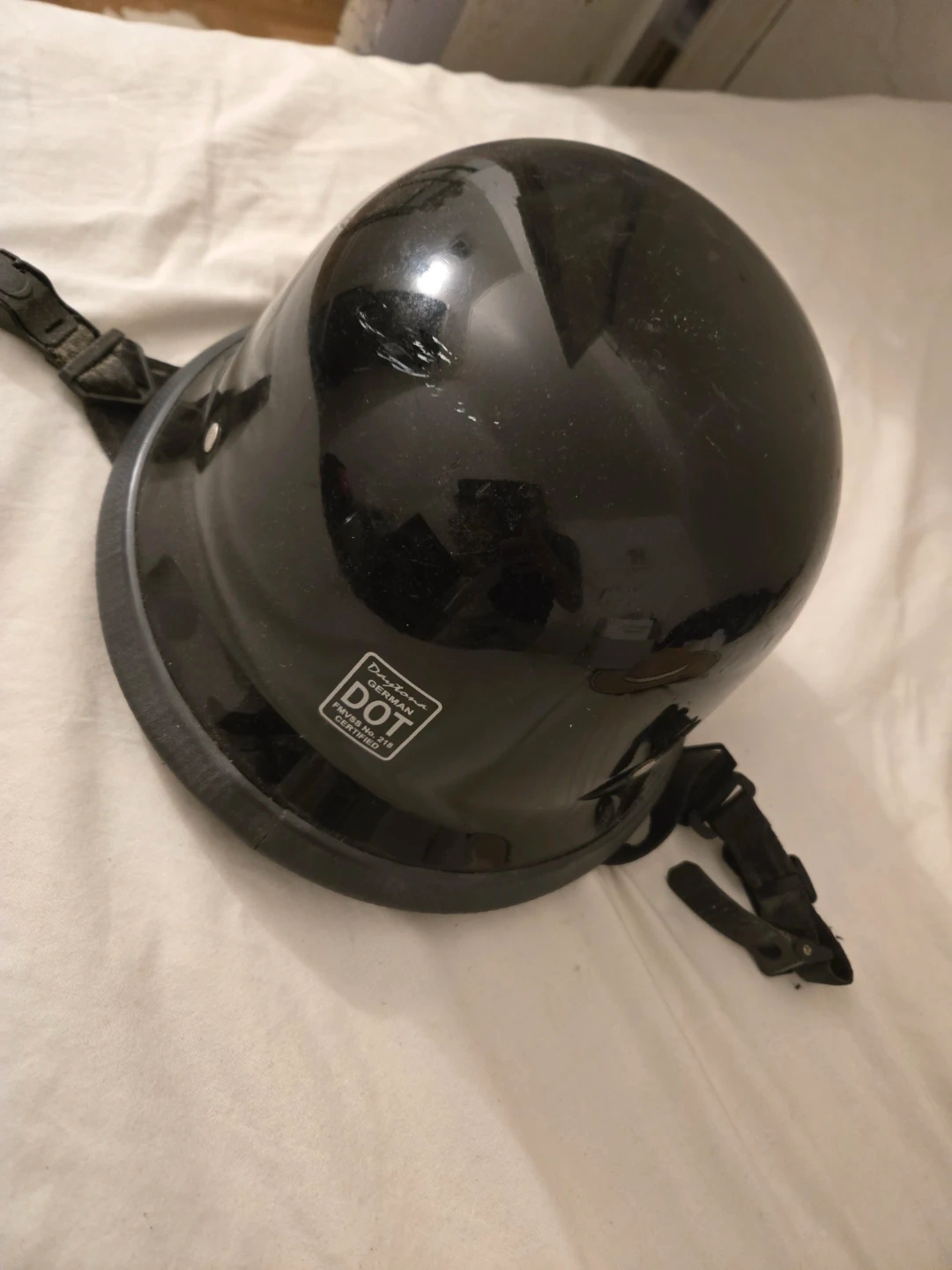 Selling a Daytona motorcycle helmet in black. It has a DOT certification. Please see the photos for details!
