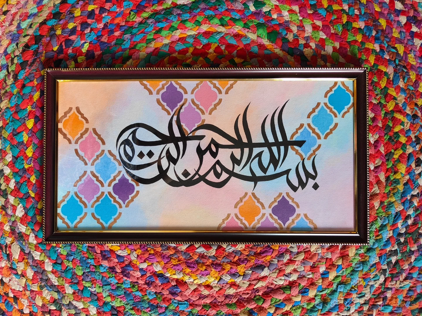 This original handmade Acrylic painting with beautiful Arabic calligraphy of ‘Bismillah’ is a soothing addition to any space. It adds calmness, blessings and a constant reminder of the intention for doing anything in life.