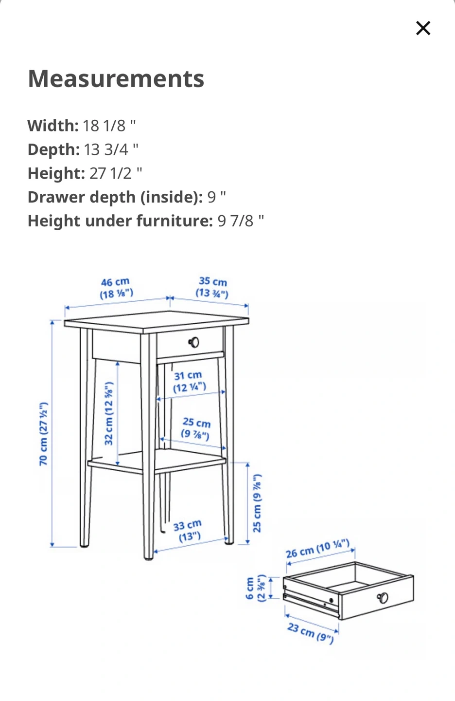 - Dimensions18 1/8" W x 13 3/4" D x 27 1/2" H