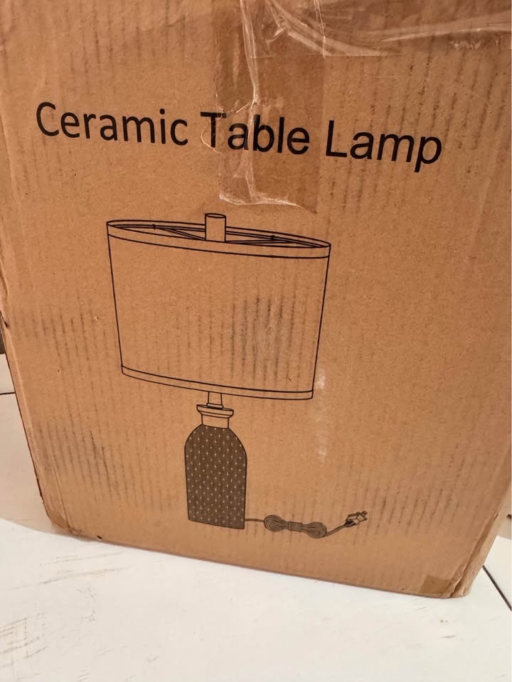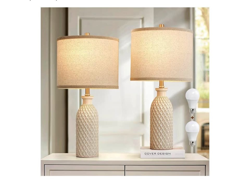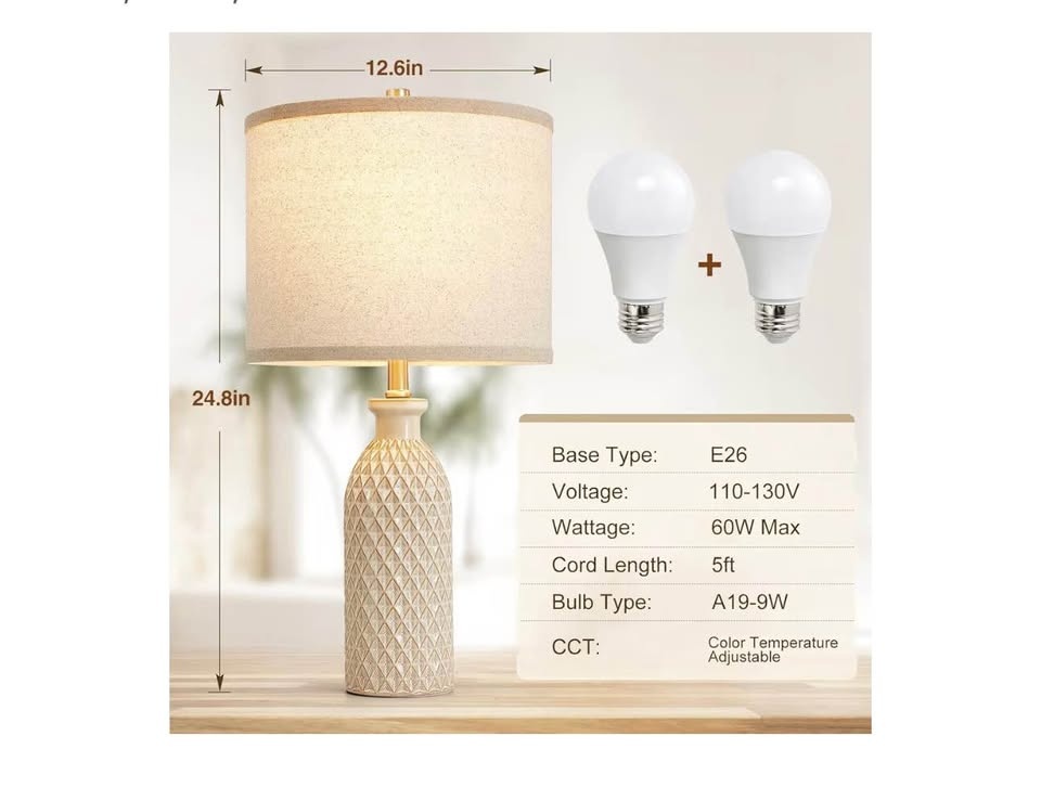 Farmhouse 24.8" bedside lamps with 3-color temperature. Modern nightstand lamp, desk reading lamp with fabric drum shade for bedroom, living room, office. 2 bulbs included.