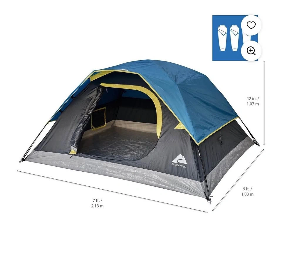 Selling an Ozark Trail 3-person dome tent. It features an enlarged dome design with angled fiberglass poles for extra headroom and a tub-style floor to help keep water out. The seam-taped edges offer better weather protection. This tent is easy to set up and take down, fitting most camping occasions. Plenty of floor space for up to 3 people. Includes an electrical port. Made with a sturdy fiberglass frame and polyester material. Perfect for family camping, backpacking, hiking, or backyard use. Feel free to message if you have any questions!