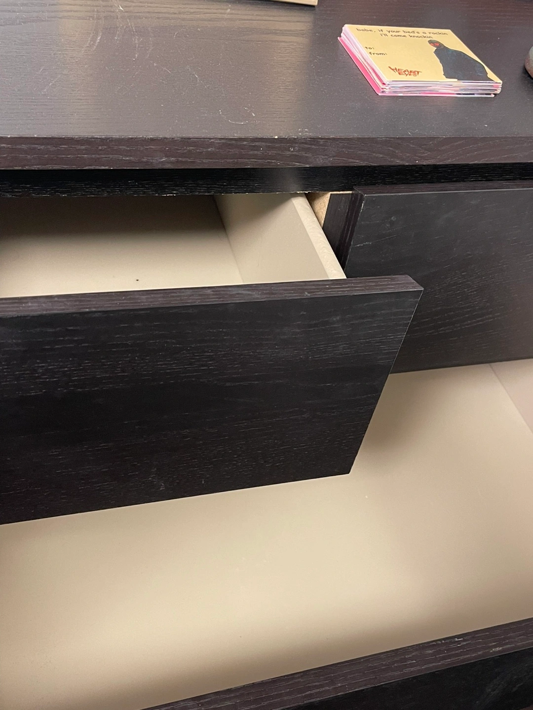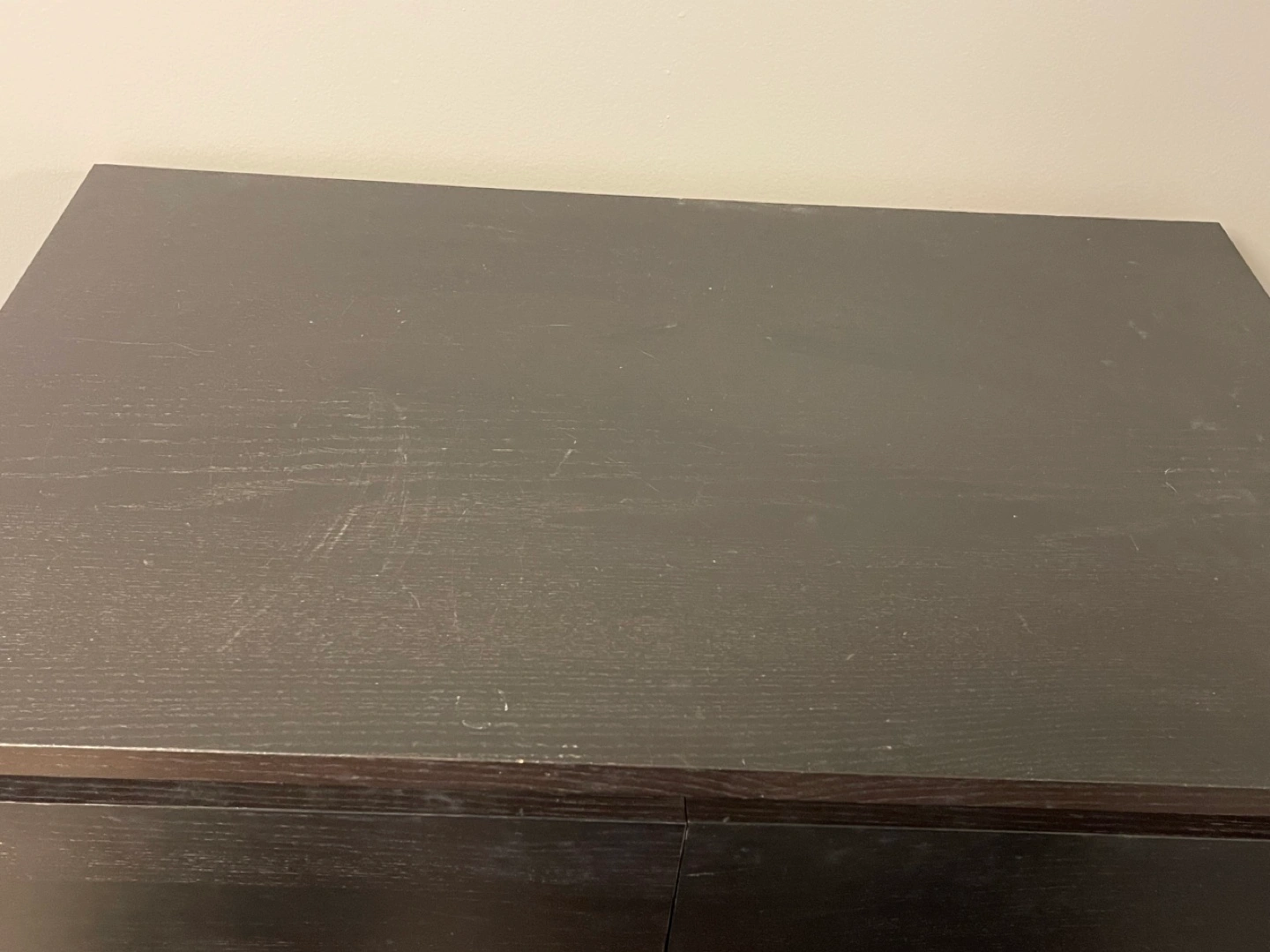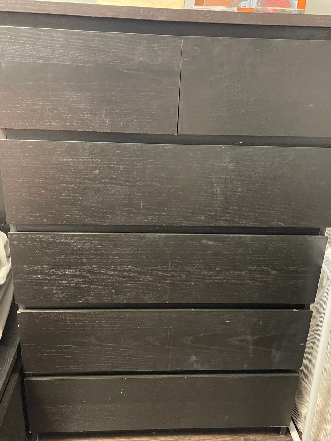 Dark Brown/black color pattern. All drawers roll. Perfectly smoothly. Minor wear.