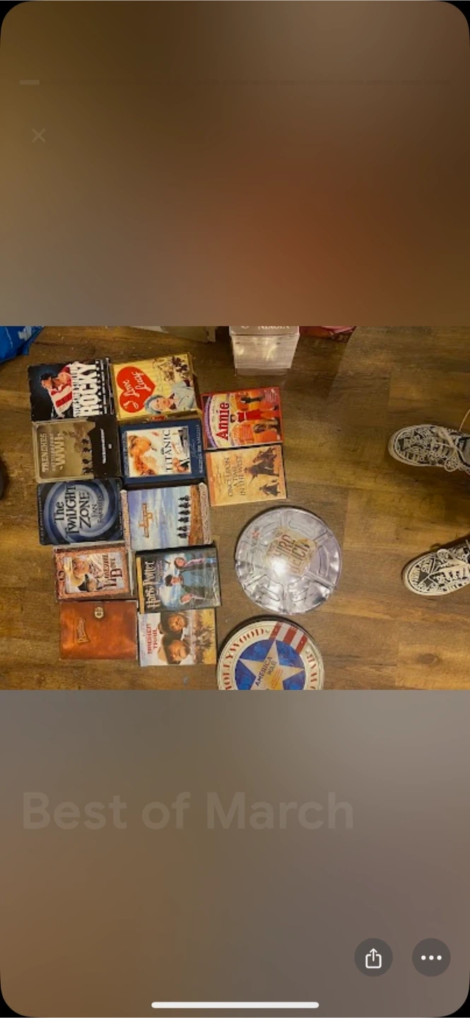 A collection of DVDs including movies like Rocky, Titanic, Annie, and The Twilight Zone. Also includes Harry Potter and Once Upon a Time in the West. Comes with some collectible tins. Perfect for movie nights!