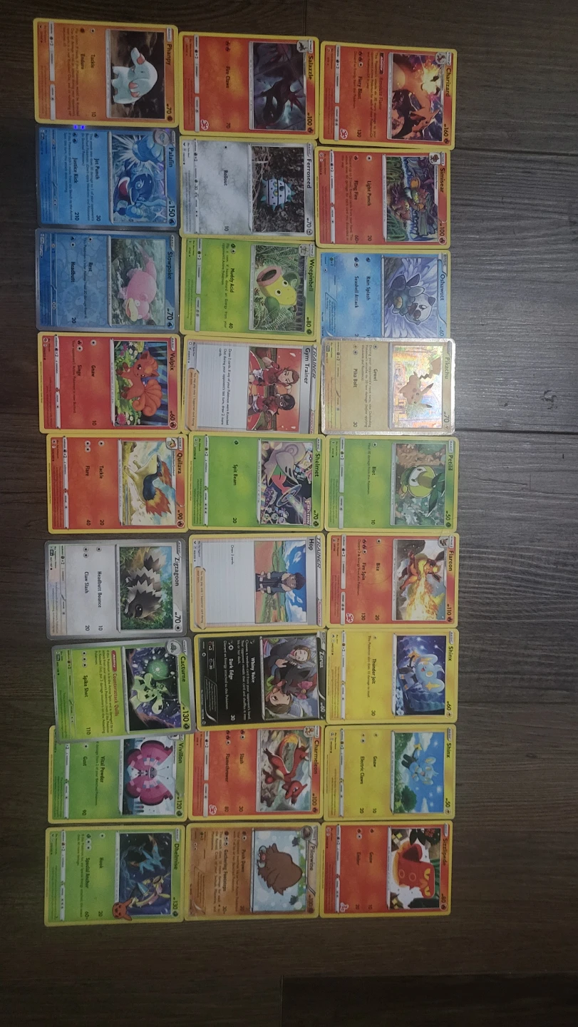A collection of various Pokémon trading cards. These cards feature different Pokémon characters. They're great for collectors and players! They are real agree with me on this great deal.