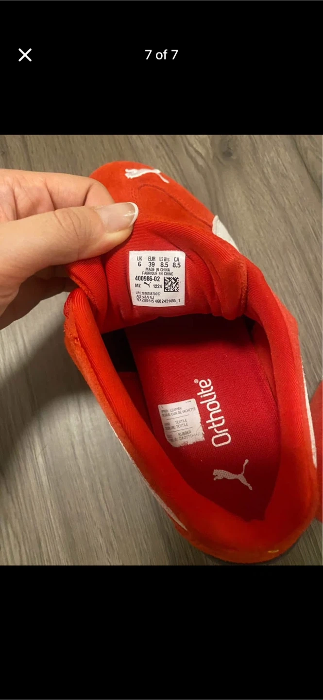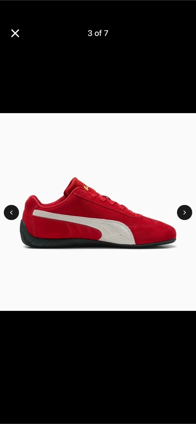 These red Puma sneakers are made with a suede upper and feature the classic Puma formstrip. They have a lace-up closure for a secure fit. The rubber sole provides good traction.