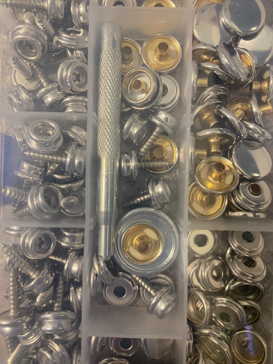 Includes a variety of marine grade stainless steel snap fasteners for canvas, tarps, tents, and clothing. These are rust and corrosion resistant, ideal for salt water and wet environments. The set comes with a handy punch tool for easy installation. Perfect for outdoor and DIY projects!