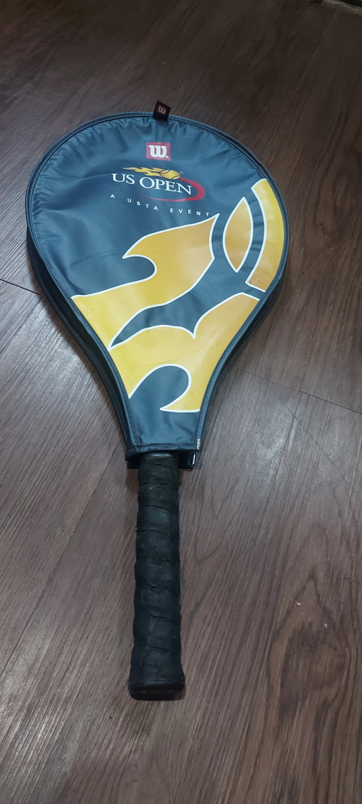 Selling a Wilson US Open tennis racquet. It comes with its original case. The grip is worn, as shown in the photos, but the racquet itself is in good condition!