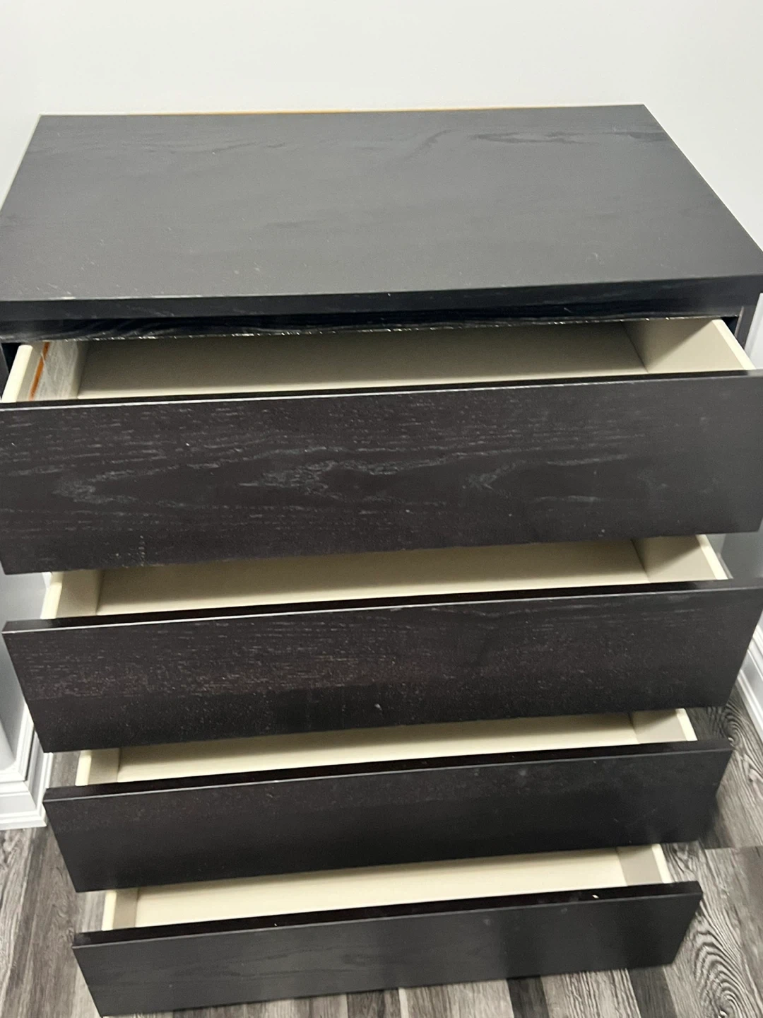 Selling a well-maintained IKEA MALM 4‑Drawer Dresser in dark brown. The dresser is sturdy, spacious, and perfect for organizing clothes or household items. All drawers slide smoothly and provide plenty of storage.
