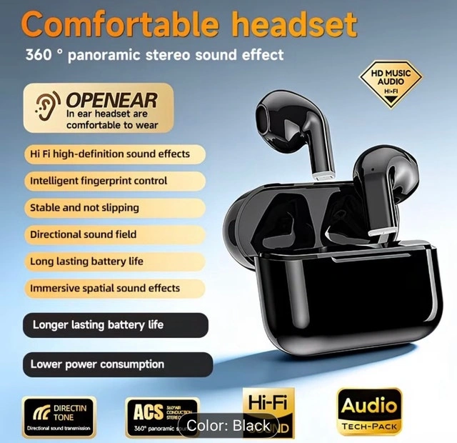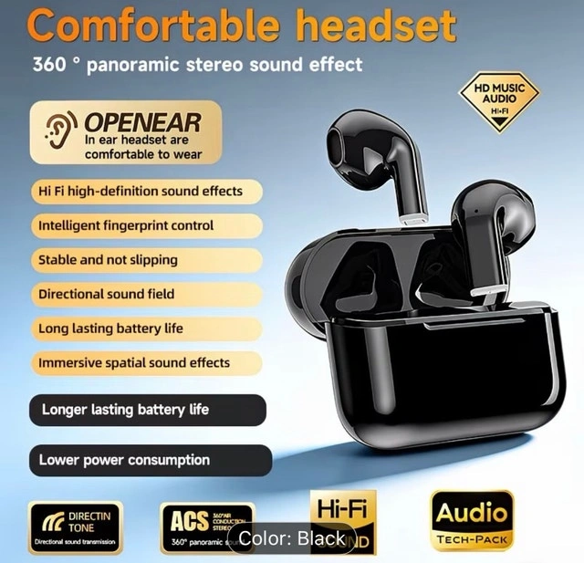 Experience high-fidelity sound with these Openear wireless headphones. These earbuds feature intelligent fingerprint control and a long-lasting battery. The ergonomic design ensures a comfortable fit for extended listening sessions. Specifications: HiFi high-definition sound effects, Intelligent fingerprint control, Stable and non-slipping design, Directional sound field, Long-lasting battery life, Immersive spatial sound effects, Lower power consumption. Cash accepted. Cashless payment accepted.