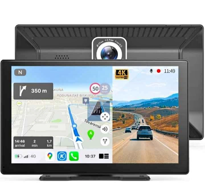 9-inch Portable Apple CarPlay Car Screen, Wireless Android Auto, 4K Dash Cam and 1080P Backup Camera, ADAS Assistance System, GPS Navigation, Mirror Link.