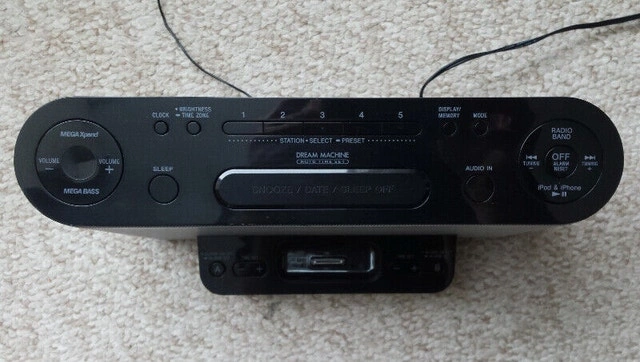 Great and clean condition. AM/FM radio with clock, dual alarm and sleep timer. I also have a brand new bluetooth adapter designed for this IPod port. Backlit LCD screen - 3 levels Built-in stereo speaker system. 3.5mm auxiliary input (on the back) Time sets automatically. Pickup in East York or in Scarborough. We can meet along Bloor-Danforth line, for example.