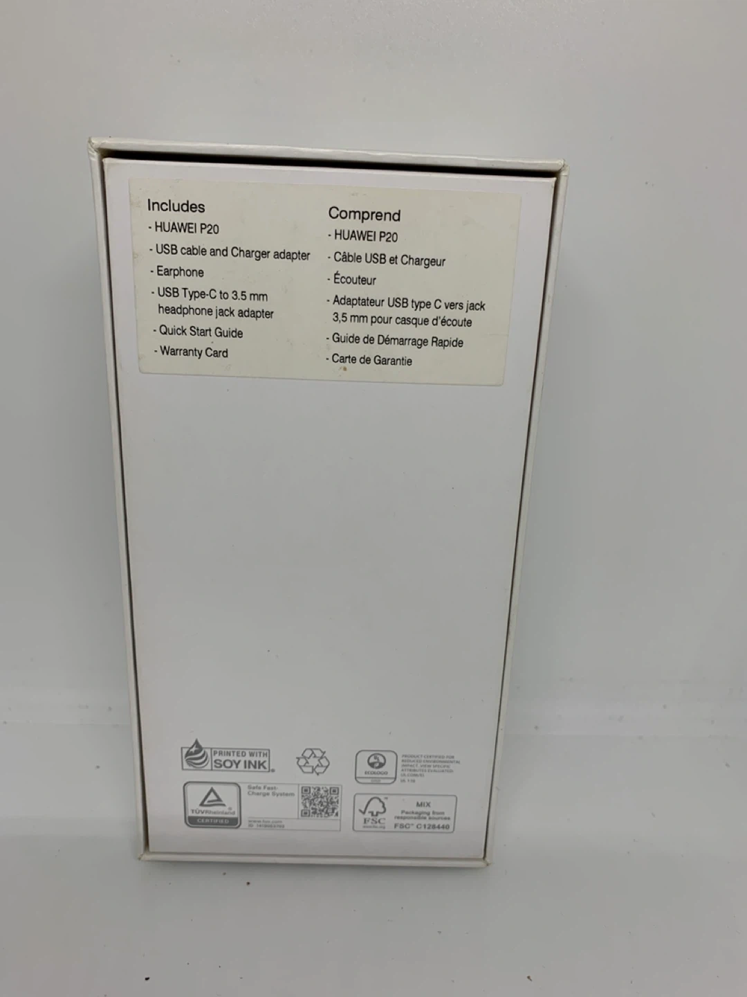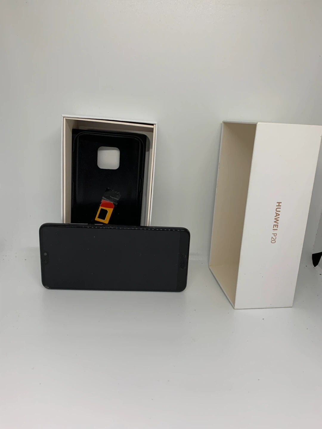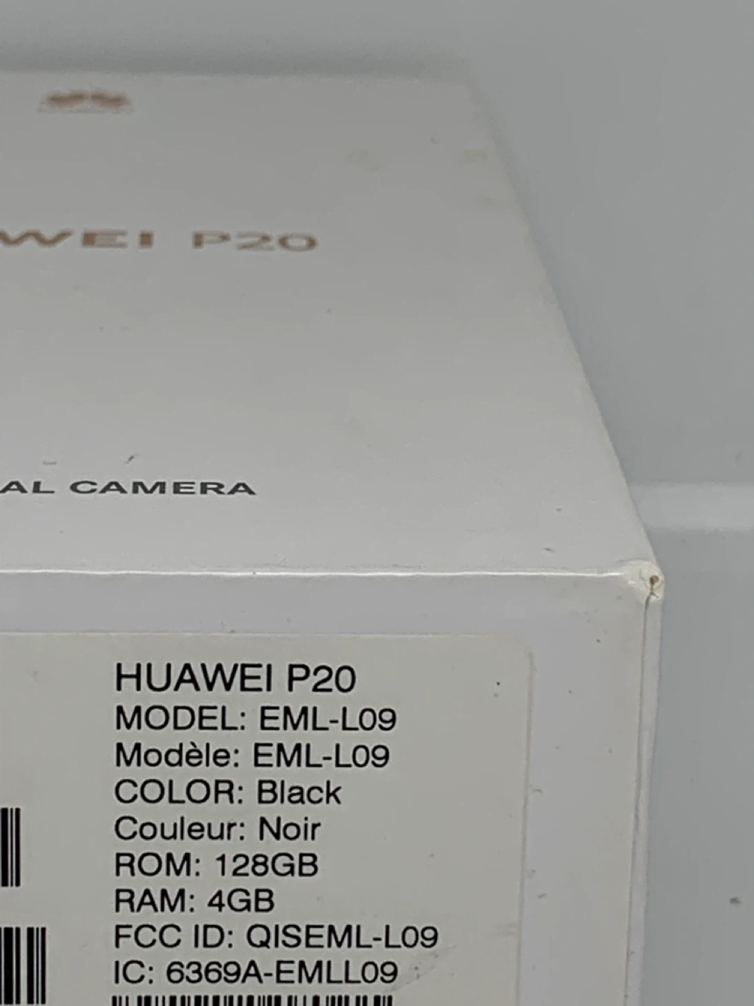 93Selling a Huawei P20 in black. It comes with the original box and includes a USB cable and charger adapter, earphone, USB Type-C to 3.5 mm headphone jack adapter, quick start guide, and warranty card. Model number is EML-L09. ROM: 128GB, RAM: 4GB
