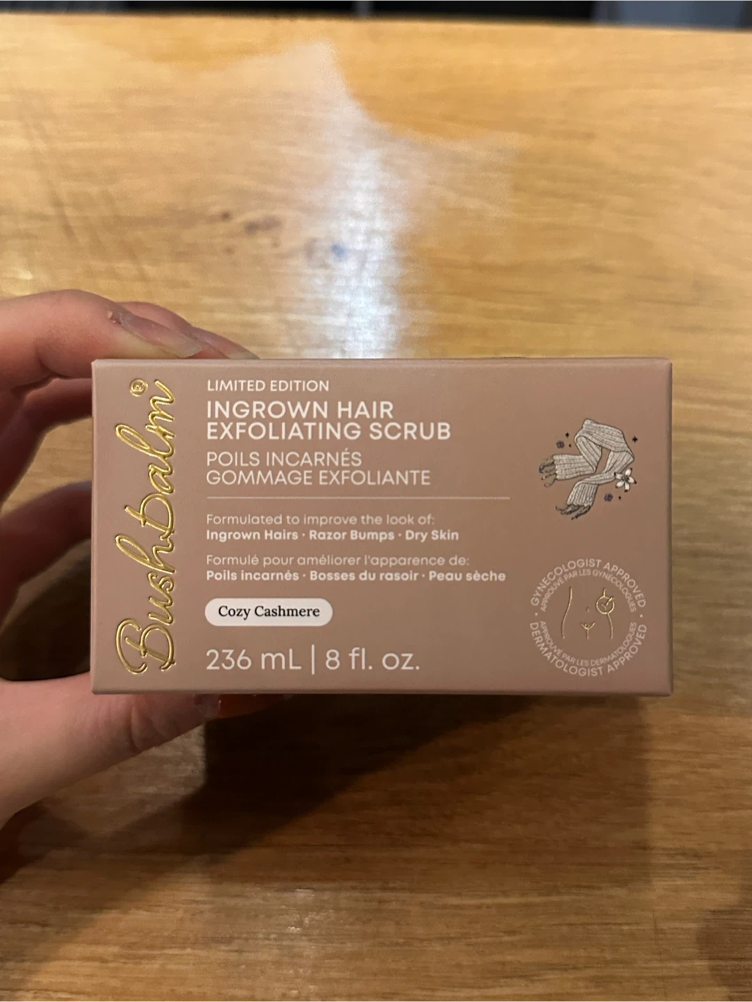 I closed down the store and having a few left over new body scrub. Selling a limited edition Bushbalm Ingrown Hair Exfoliating Scrub in the Cozy Cashmere scent! It's a gentle scrub designed to improve the look of ingrown hairs, razor bumps, and dry skin. The scrub comes in a 236 mL (8 fl oz) container and is formulated with hydrating oils to help skin feel soft and smooth. Perfect for bikini lines, legs, underarms, or anywhere else you need exfoliation!