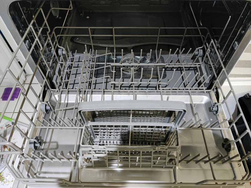 This dishwasher works perfectly with some normal cosmetic wear and tear.