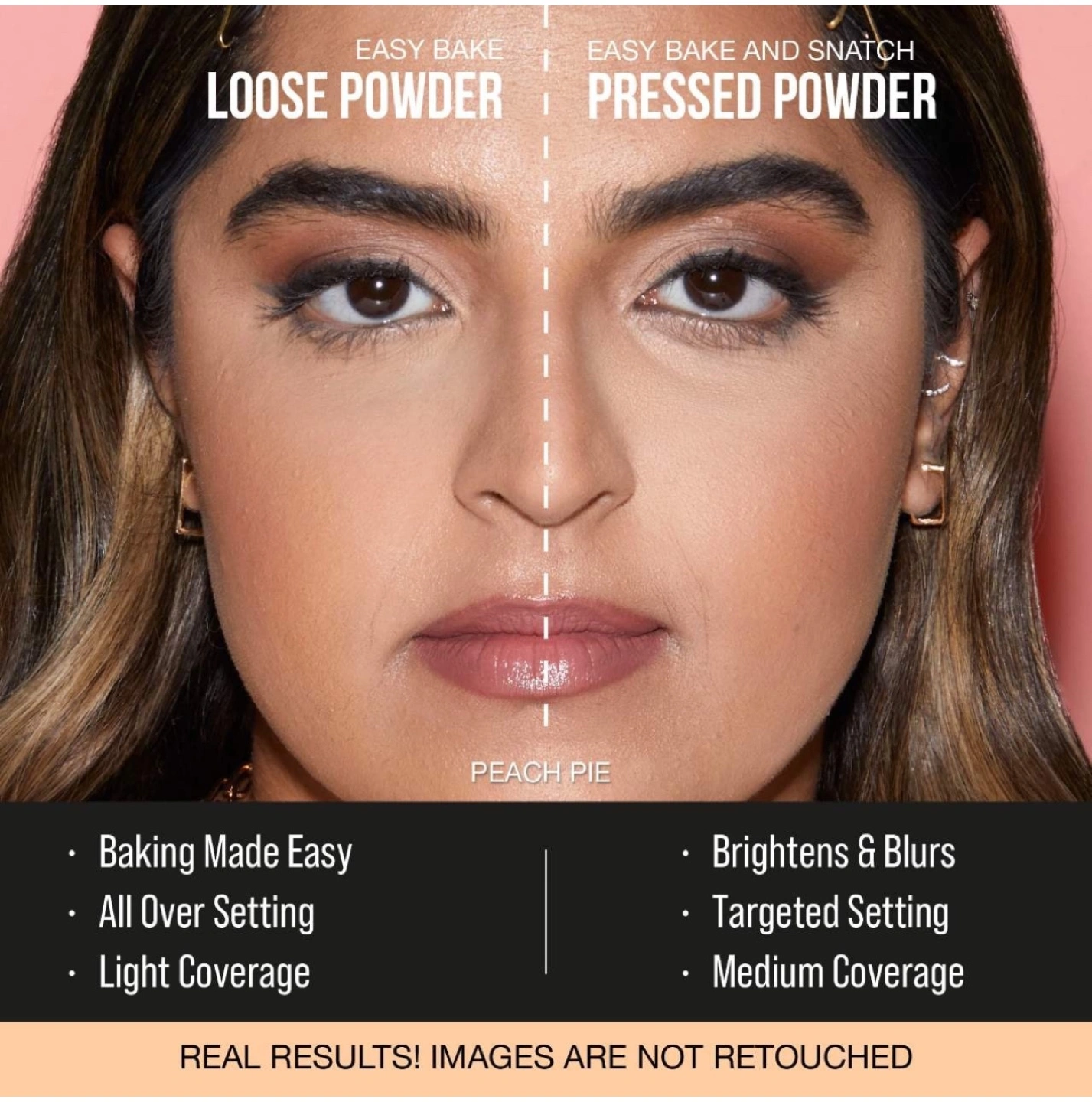 Binb. Peach Pie shade. Great for baking and setting makeup. Medium coverage. Includes compact.
