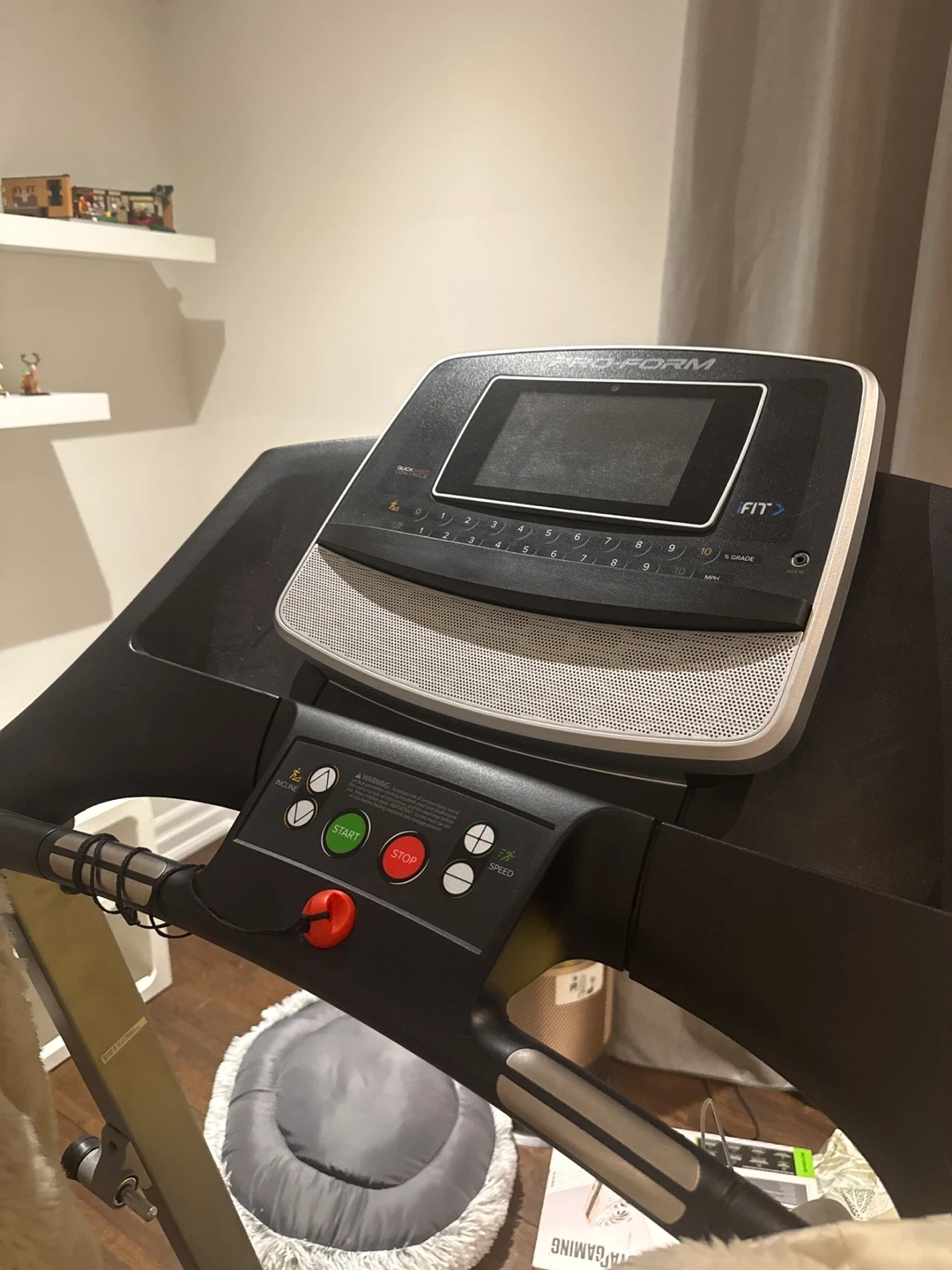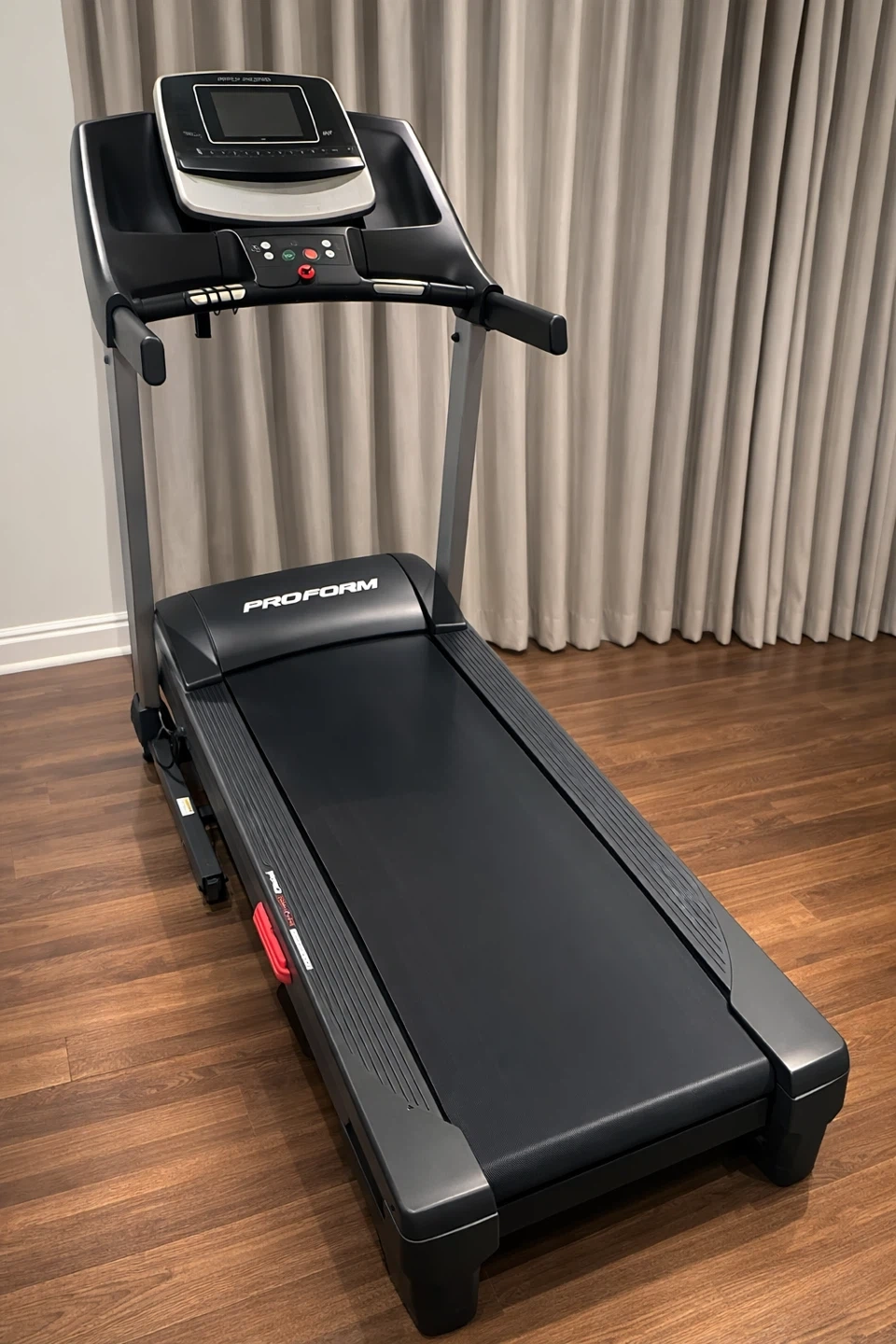 This is a ProForm treadmill. It's a solid piece of home fitness equipment for your workouts. It has various speed and incline settings visible on the console.