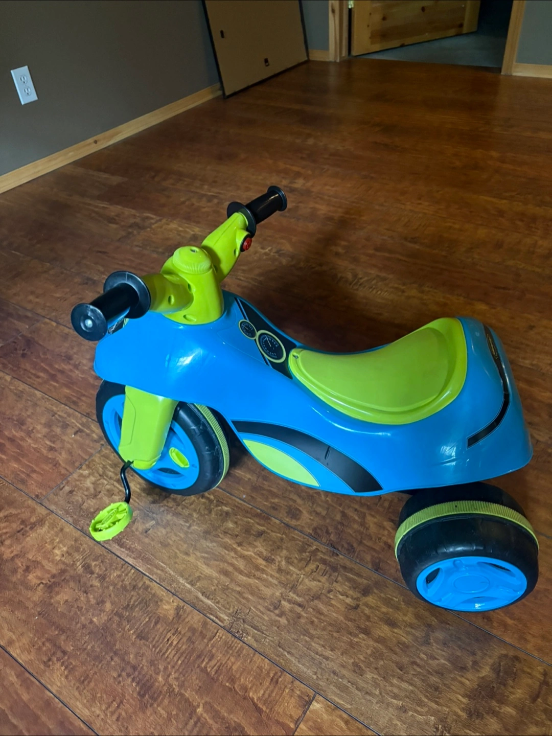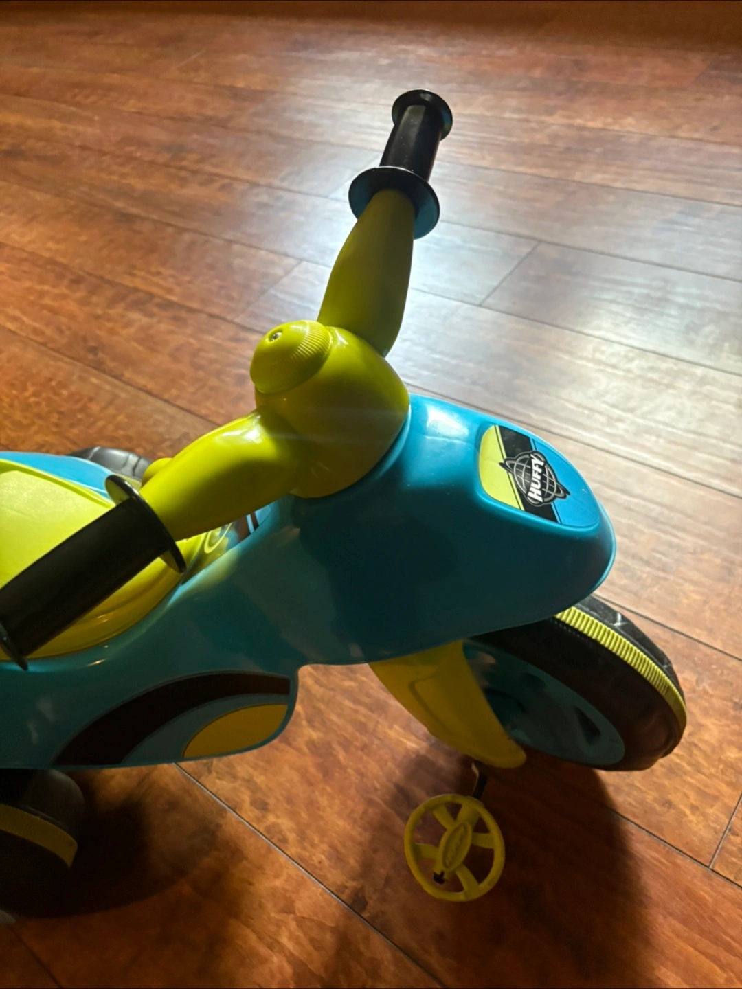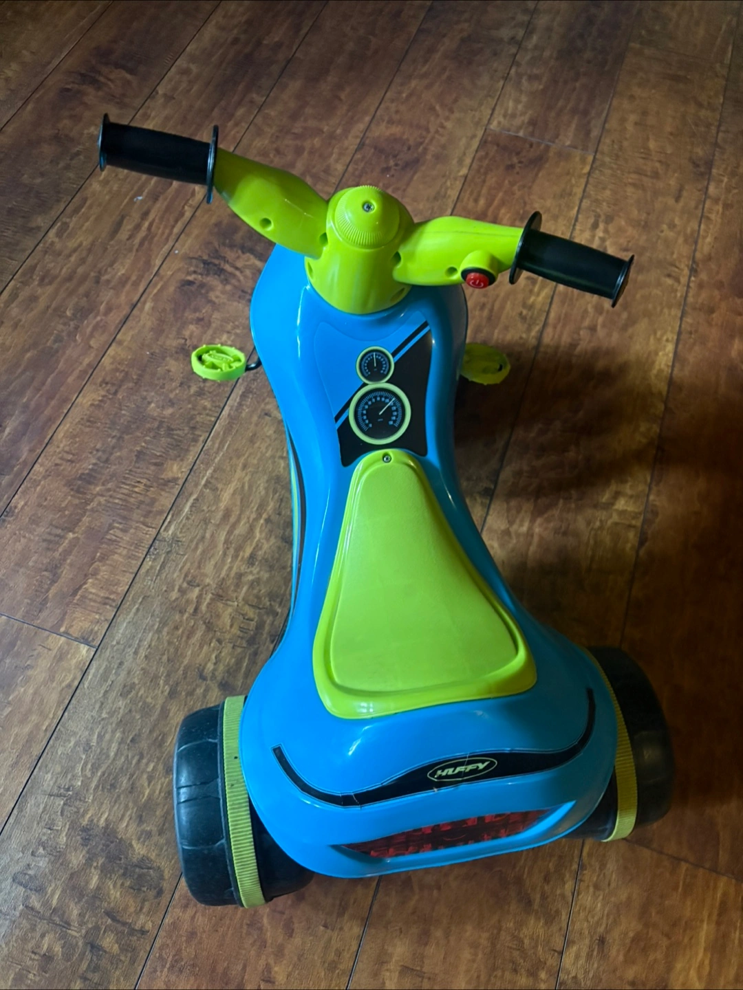 41Pre-owned Huffy toddler tricycle. Features three wheels, hand grips, and a lime green seat. Fun for little ones. Electric bike function doesn’t work - but petals do!