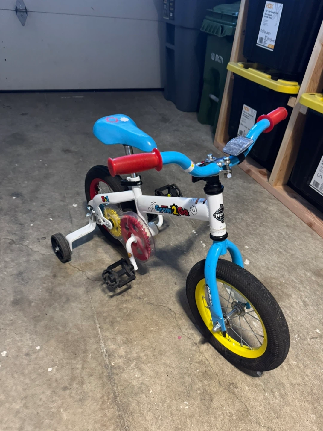 11Huffy Grow2Go 3-in-1 bike in great condition! It's a versatile bike that grows with your child. It can be used as a balance bike, a training bike with training wheels, and a regular bike. Great for kids learning to ride!