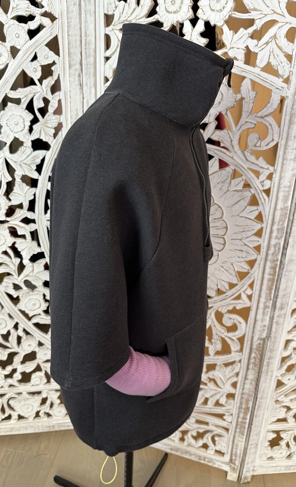Stylish, oversized cape perfect for active or casual outdoor wear, whether for running, biking, or a post-yoga walk