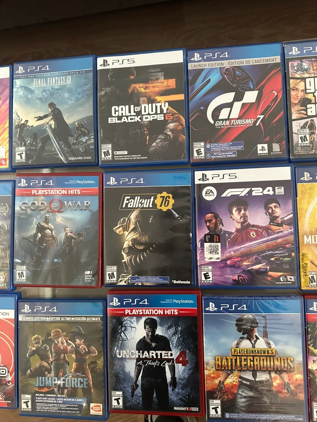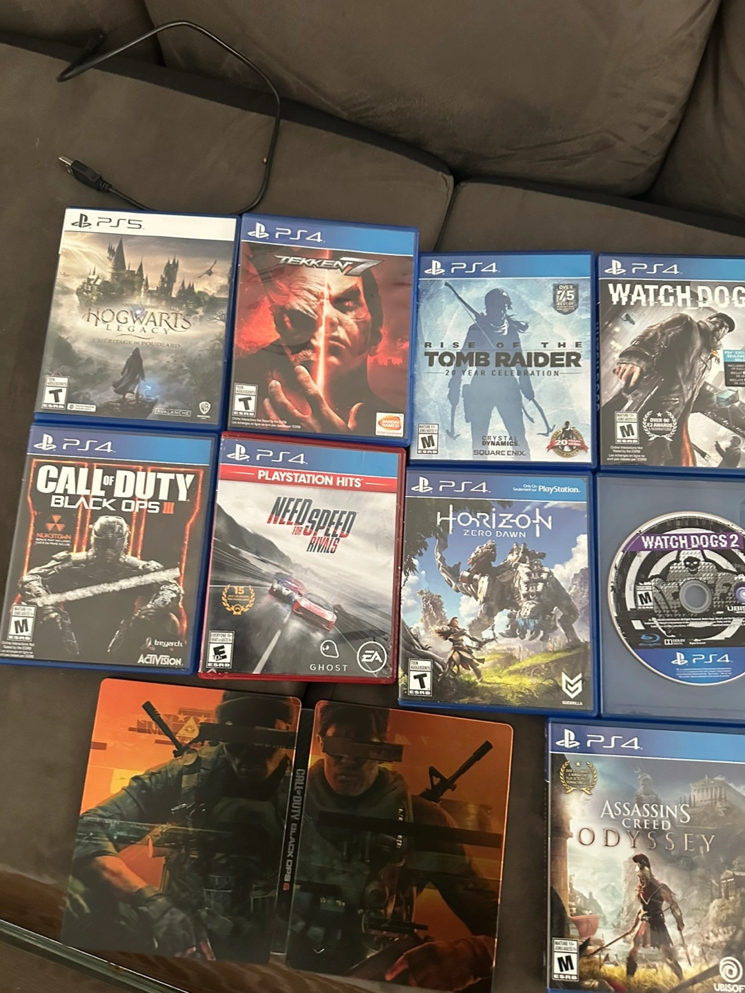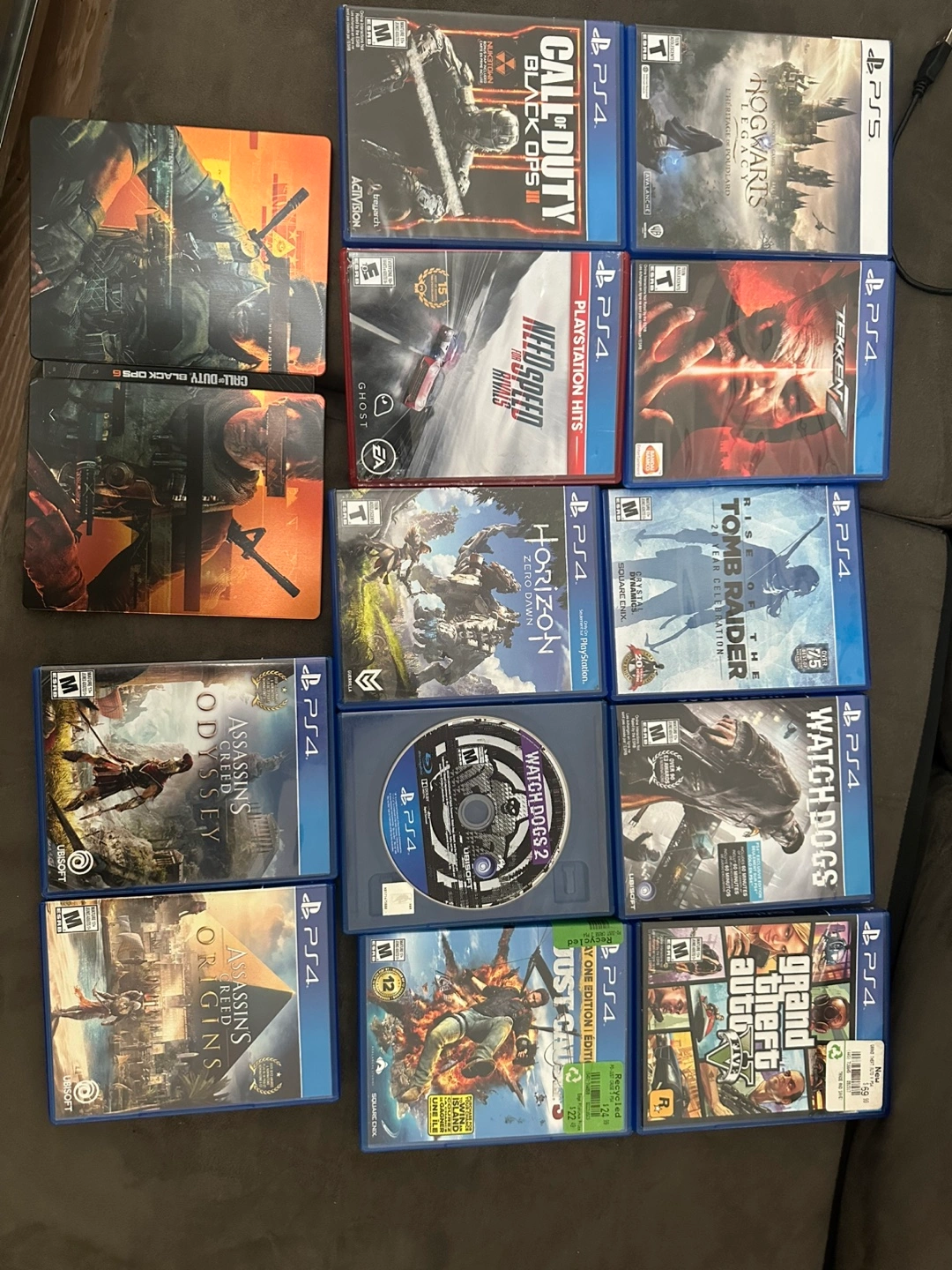 Pickup location - 25 trailwood drive or delivery at reasonable price for 3 or more games. PRICE IS NOT 100$ for all, so please stop asking that. DM me for individual prices , Buy 3 or more in order to get a bundle discount, PS5 games : WWE 2K23 WWE 2K24 Hogwarts legacy Call of duty black ops 6 F124 NBA 2K24 SPIDER-MAN (MILES MORALE) GTA 5 ELDEN RING PS4 GAMES ( also works with PS5) GTA 5 God of war Hogwarts Legacy Gran Turismo Mortal kombat -11 TEKKEN 7 Call of duty black ops3 Need for speed rivals Rise of the tomb raider Horizon zero dawn Watch Dogs 1 Watchdogs -2 Assassin’s creed Odyssey Assassin’screed origins Just cause 3 The last of Us - Remastered The last of Us - 2 Destiny Wolfenstein-2 F1 2020 Final fantasy XV Jump force Fallout 76 Uncharted 4 PUBG (SEALED) Plants vs zombies GW2 The Witcher wild hunt -3