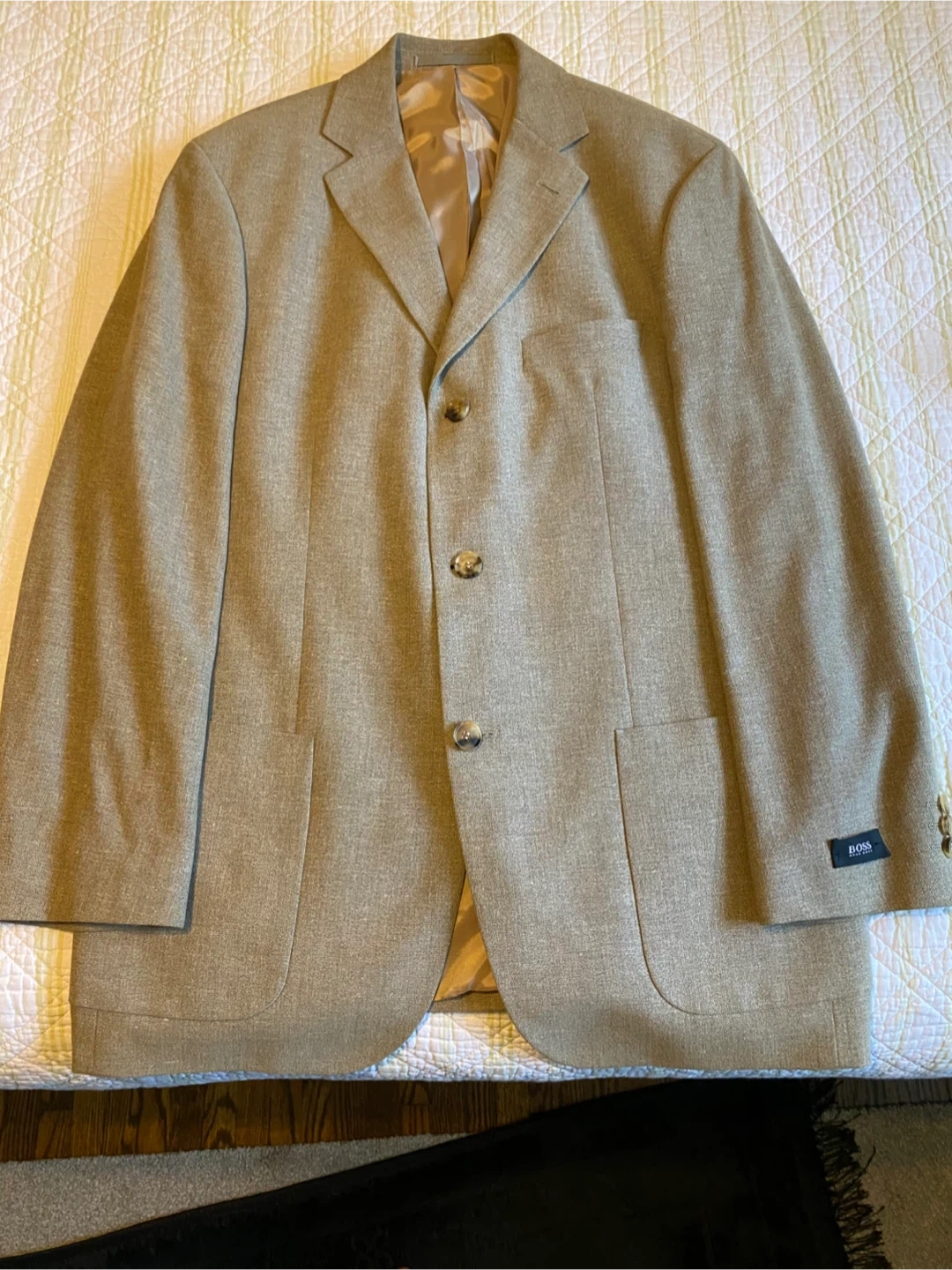 424BRAND NEW NEVER BEEN WORN a Hugo Boss blazer made with Guabello fabric. It's a size 50euro/40 us , made in Germany. The material is 60% virgin wool and 30% cotton. Retail value over $500