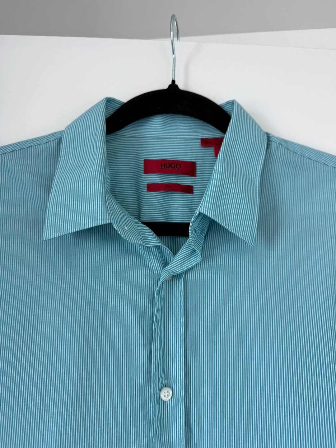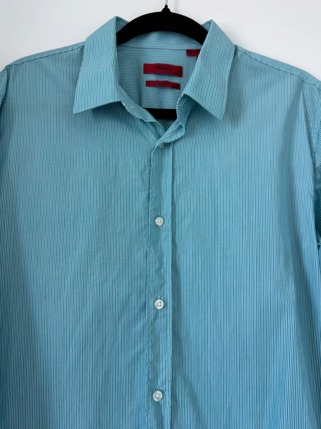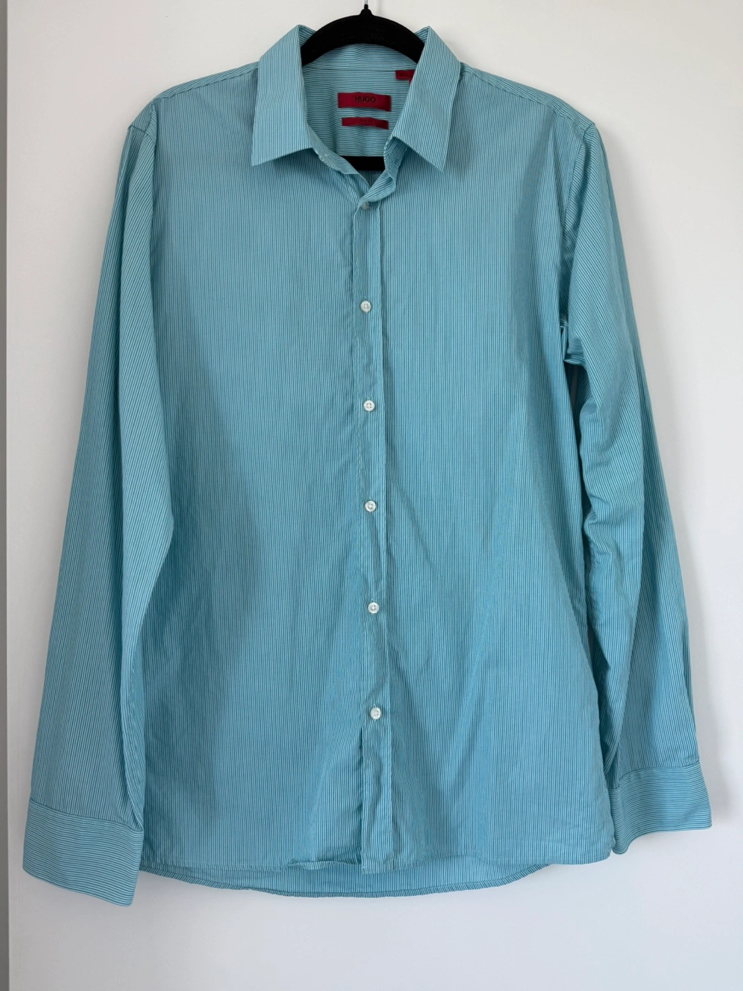 Looking to sell this HUGO shirt. It's a slim fit and features a subtle striped pattern. The size is M (Medium). It's in great condition and ready for a new home!