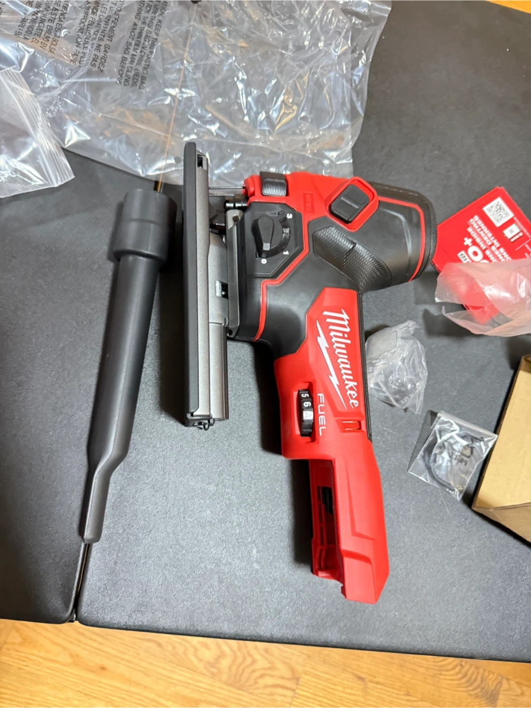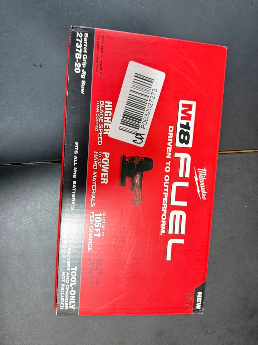 This is a Milwaukee M18 FUEL barrel grip jigsaw. It's the tool-only version, meaning battery and charger are not included. This saw offers higher blade speed than a cordless model and has power to cut hard materials. Cuts up to 105 ft. per charge.