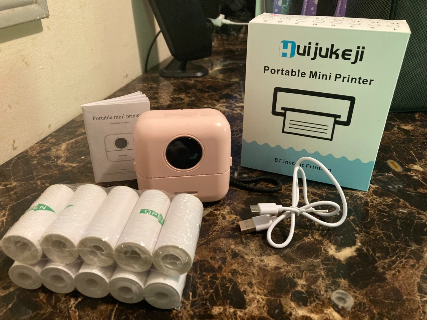 Selling a Hujukeji portable mini printer! It's in great condition and comes with the original box and accessories. Included: - Printer - USB cable - All rolls of paper Brand new never before used Pink in colour Pick up only
