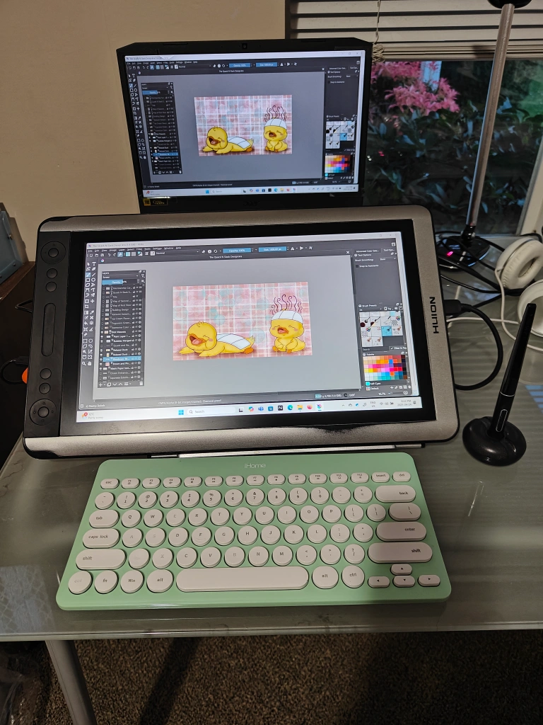 592Brand new Huion Kamvas 16 creative pen display. Includes pen, stand, gloves, and 2 HDMI cables. Makes your canvas boundless. Bought it from the manufacturer for $464.00 in 2022. Perfect for digital artists and comic creators. Best to work on a big desk space with a desk top computer and removable keyboard. This drawing graphic tablet can be used to duplicate screens or separate them from your work and personal files. *Can sell along with the wireless keyboard and mouse set as a bundle for $215.00