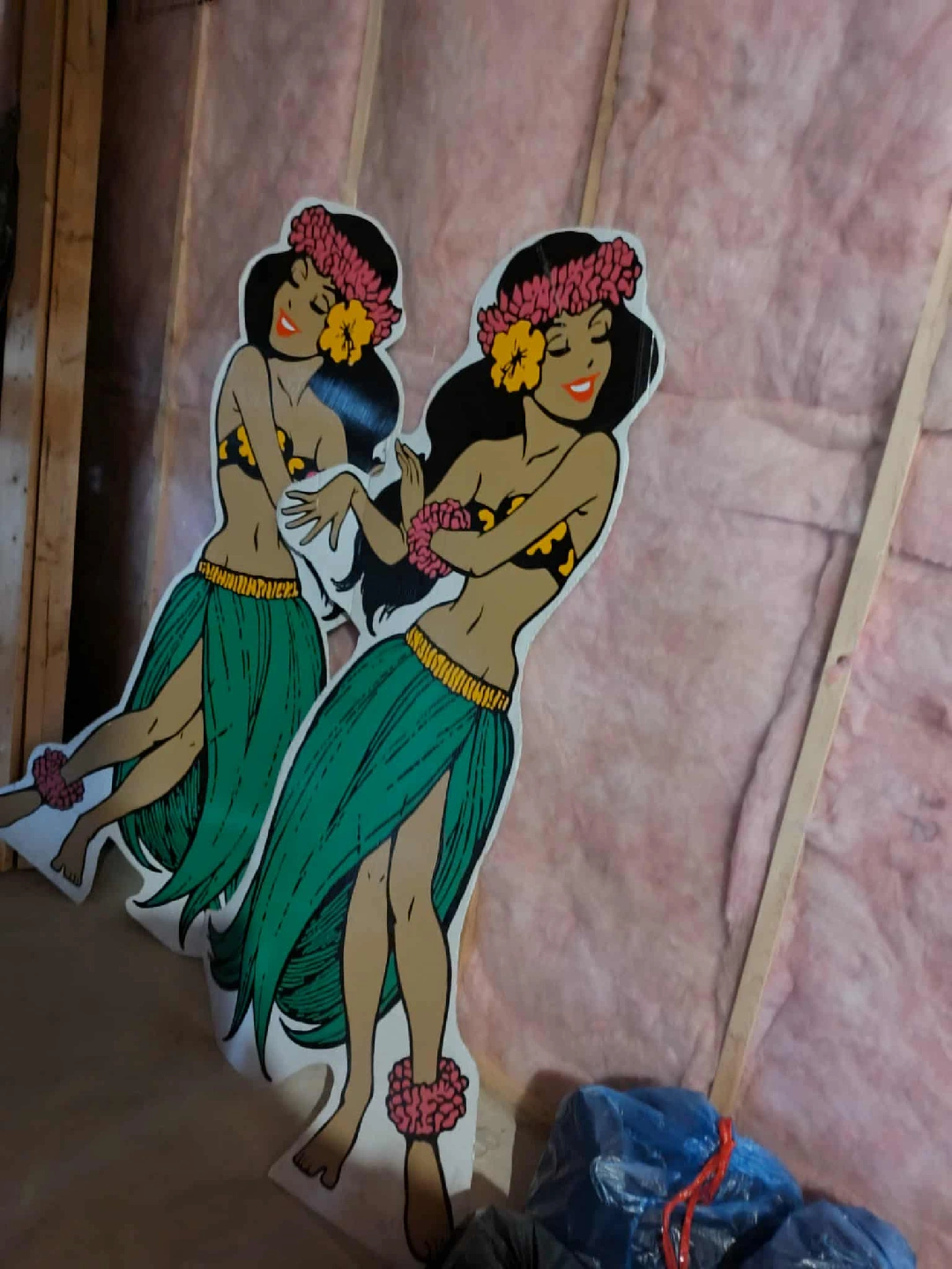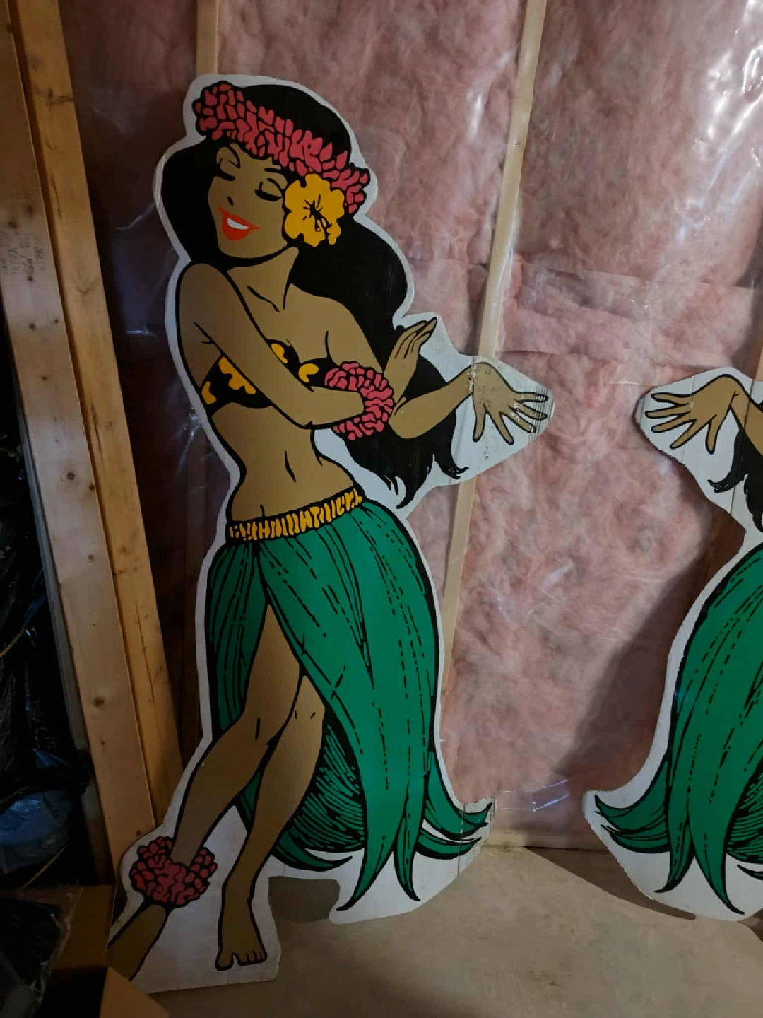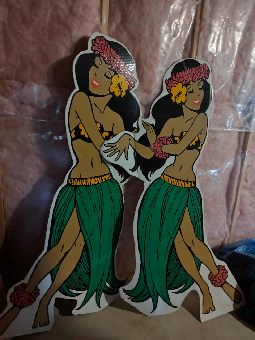 Two hula girl cutouts, perfect for adding a touch of the tropics to your space! They are in good condition and ready to bring some island vibes to your home or party