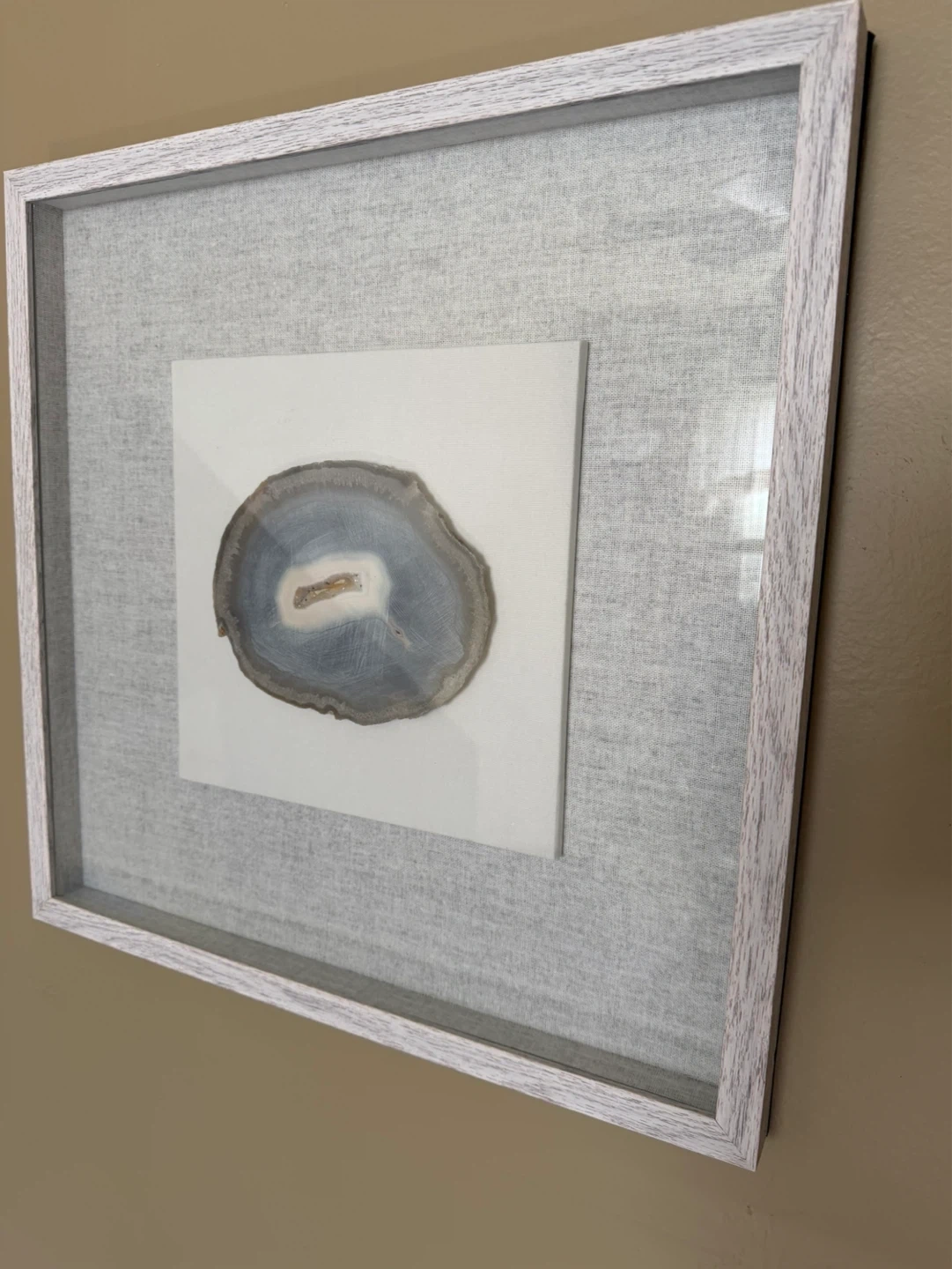 Buy & SellFramed Agate Slice Wall ArtFramed Agate Slice Wall Art$50Grey and white agate slice framed art. The frame has a distressed white wood finish. It's a lovely decorative piece for any room.WHERE TO MEETJackson AvenueView MapSELLERMoonlightEastwood181 review0 chats·0 favorites·4 viewsSEND CHAT TO SELLERHi Moonlight! I’m interested in your listing.Hi Moonlight! I’m interested in your listing.Get the Karrot app to chatSign In to chat