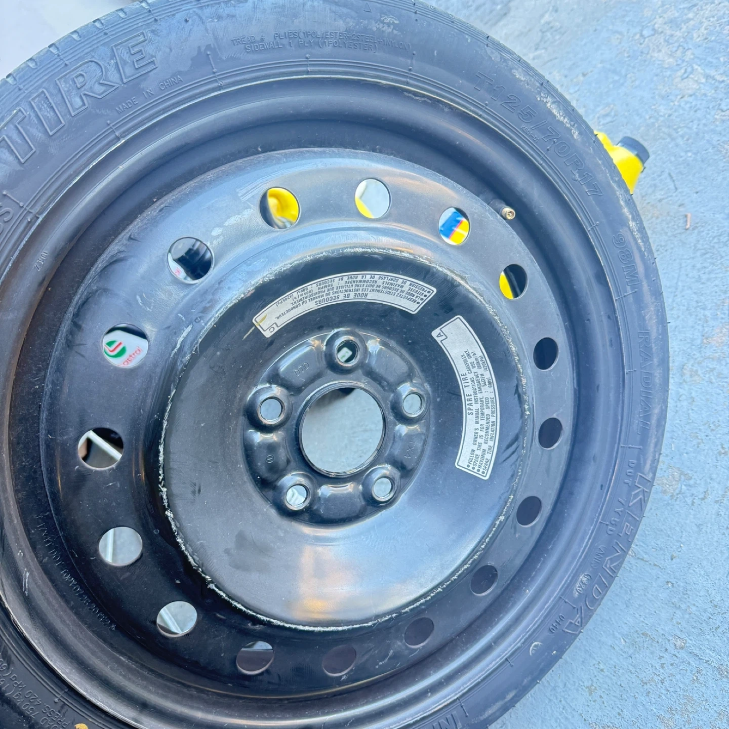 60Selling a Kenda spare tire, size T125/70R17. The tire is tubeless and radial. Also included are the tools necessary for changing the tire. For