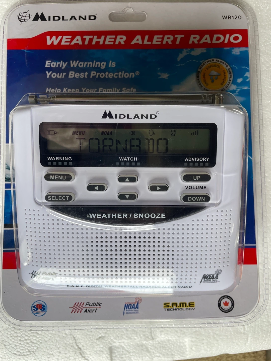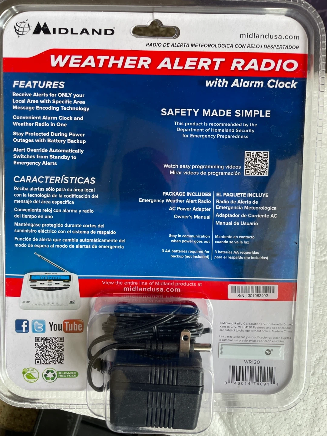 This Midland WR120 weather alert radio is designed to provide early warnings. It functions as a convenient alarm clock and weather radio in one. It's recommended by the Department of Homeland Security for Emergency Preparedness.