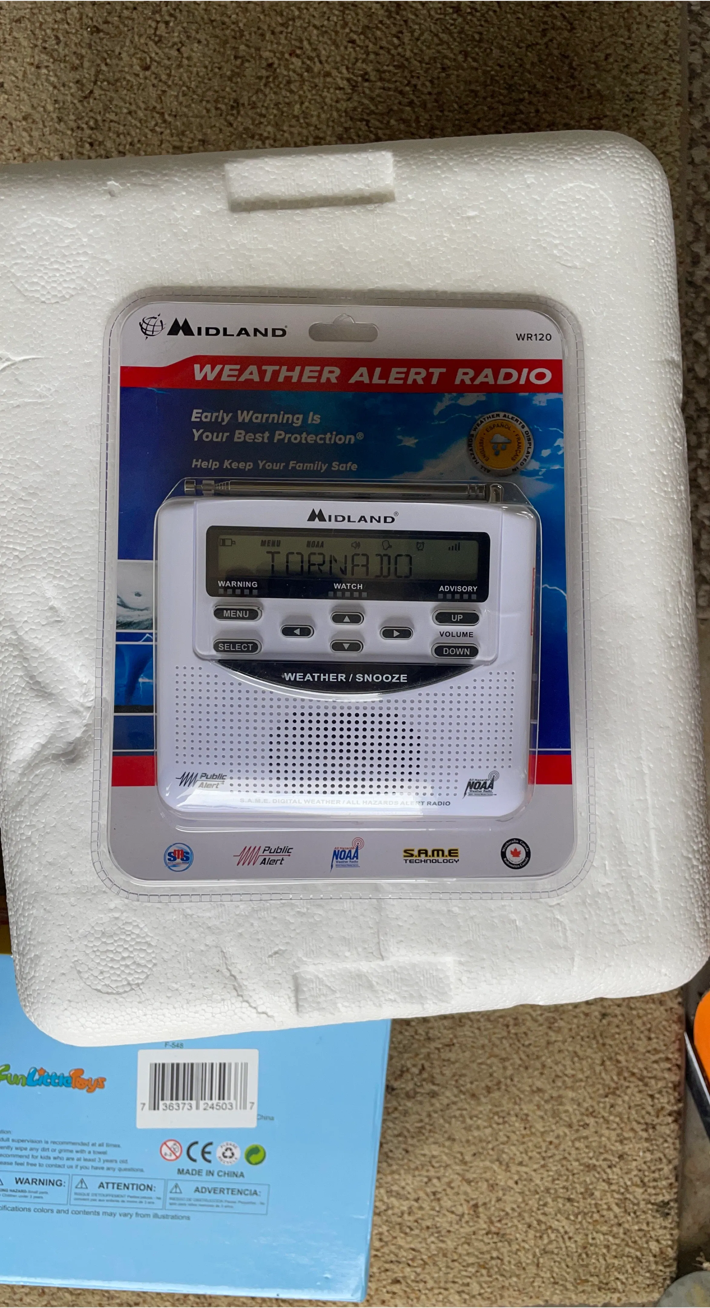 This Midland WR120 weather alert radio is designed to provide early warnings. It functions as a convenient alarm clock and weather radio in one. It's recommended by the Department of Homeland Security for Emergency Preparedness.