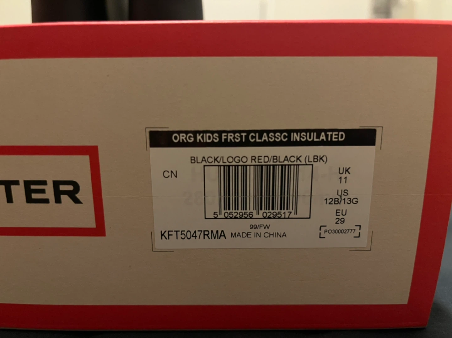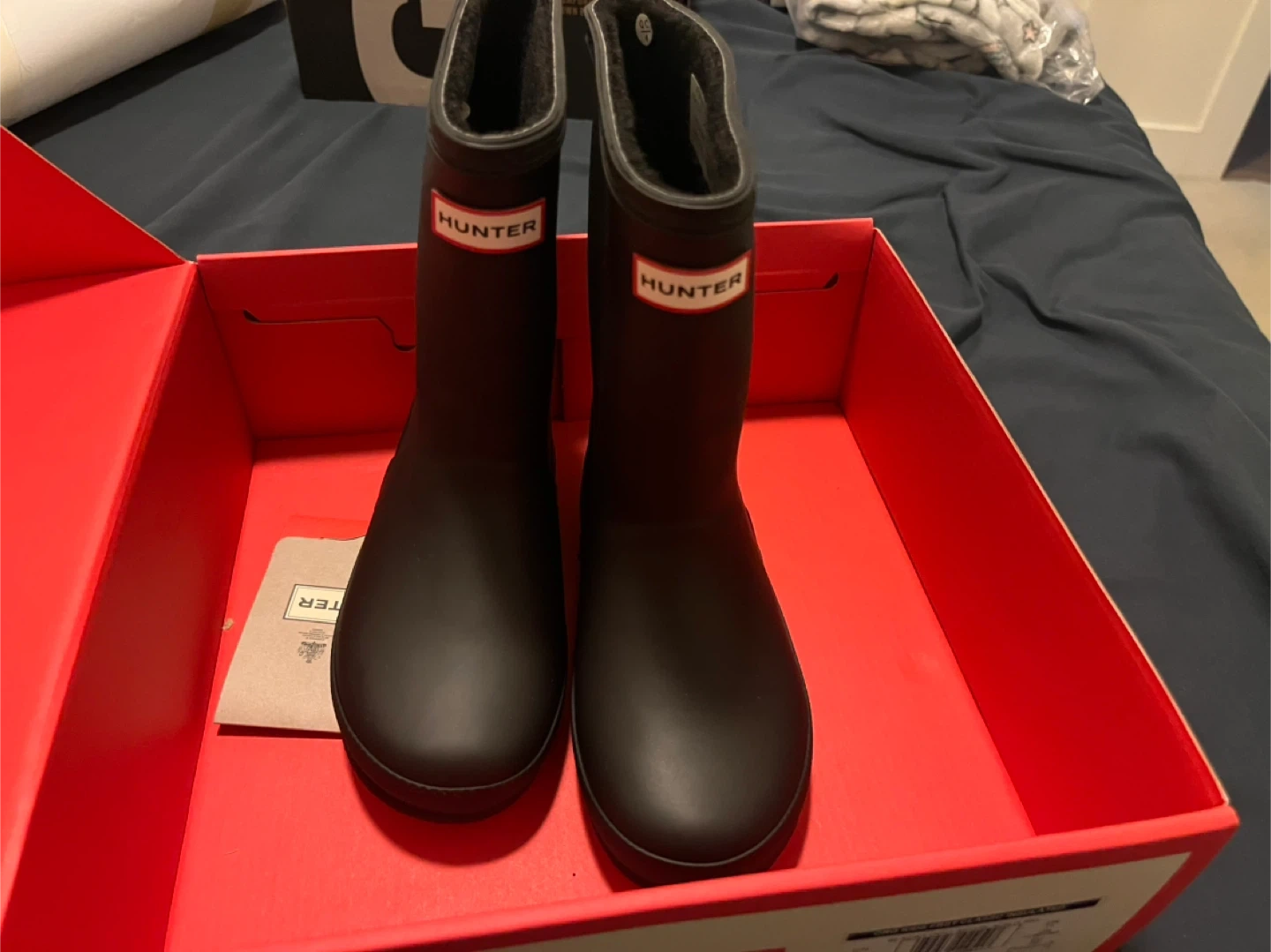 26Selling a pair of Hunter Original Kids First Classic Insulated rain boots in black! They are in excellent condition and come with the original box. The size is US 12B/13G.