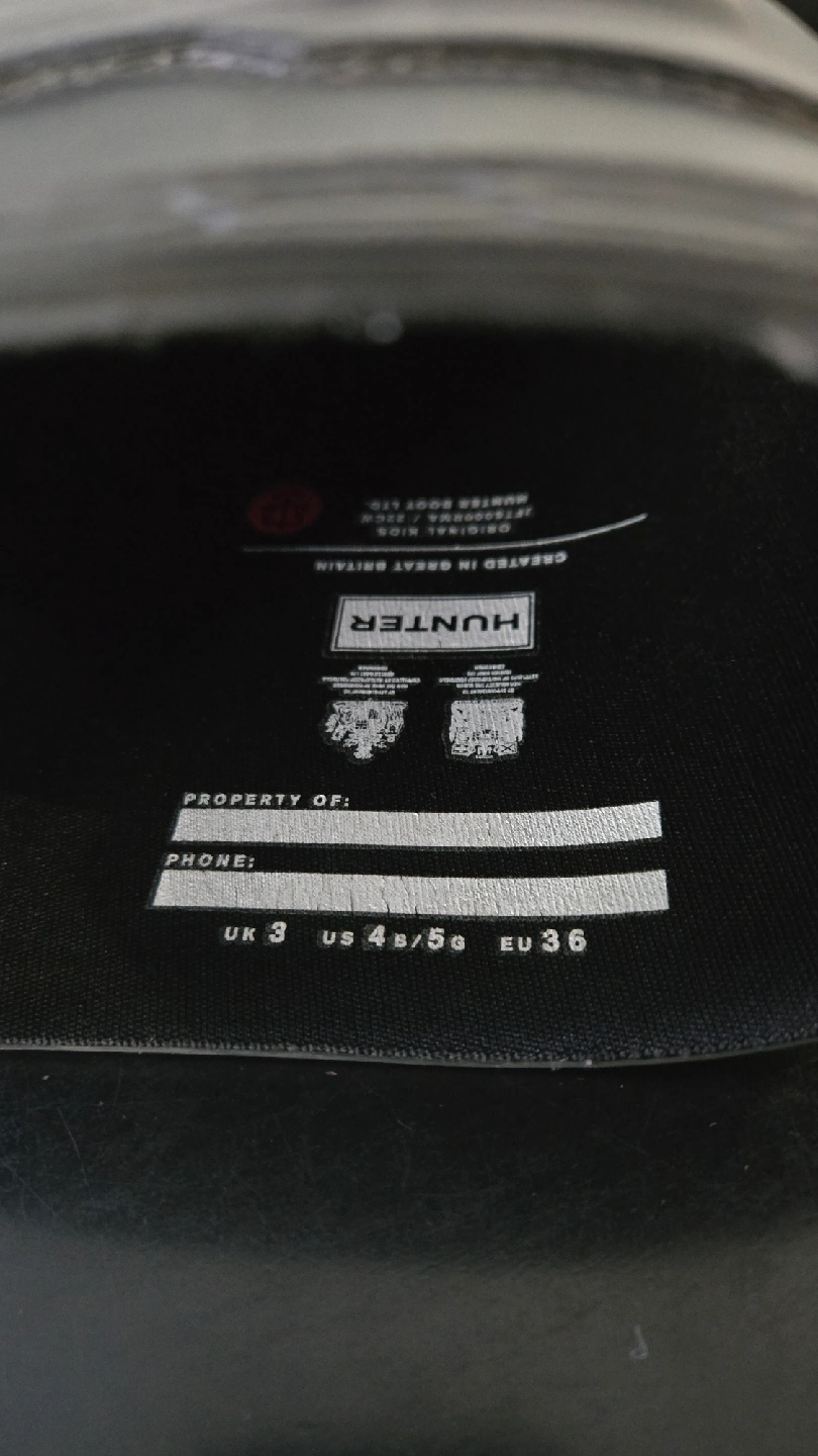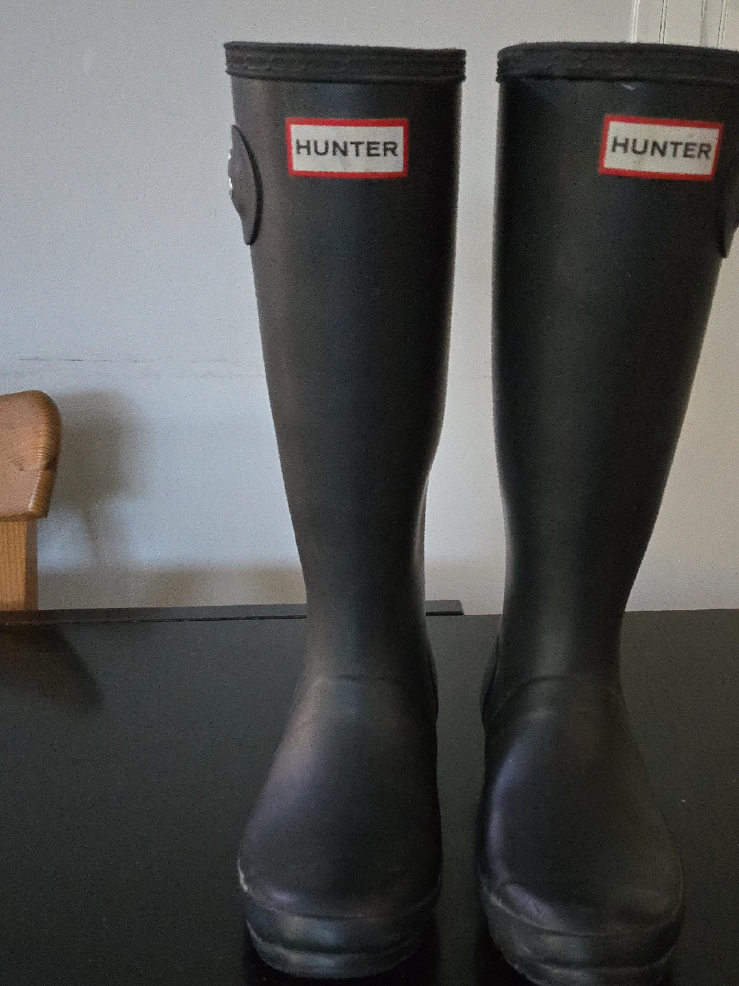 10Selling a pair of Hunter kids rain boots in black. They are size US 4/5. Great for puddle jumping!