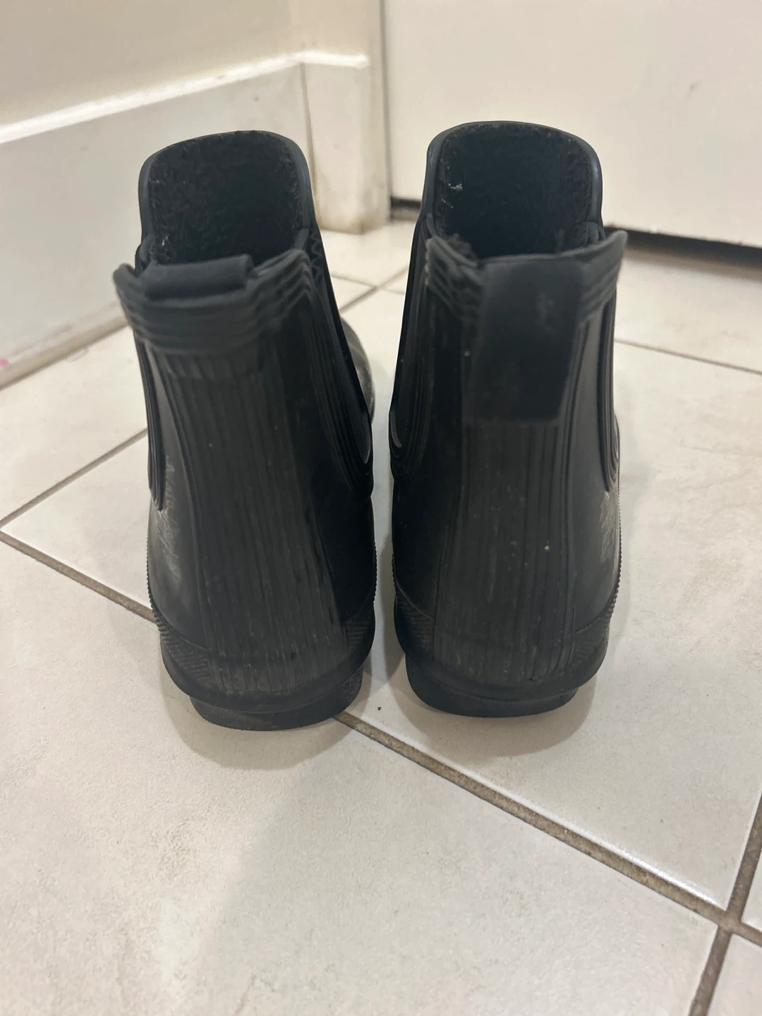 100Selling a pair of Hunter Original Chelsea boots in black. These are great for rainy days or just adding a bit of style to your outfit. They have a comfortable fit and are in good condition! *Cash only please