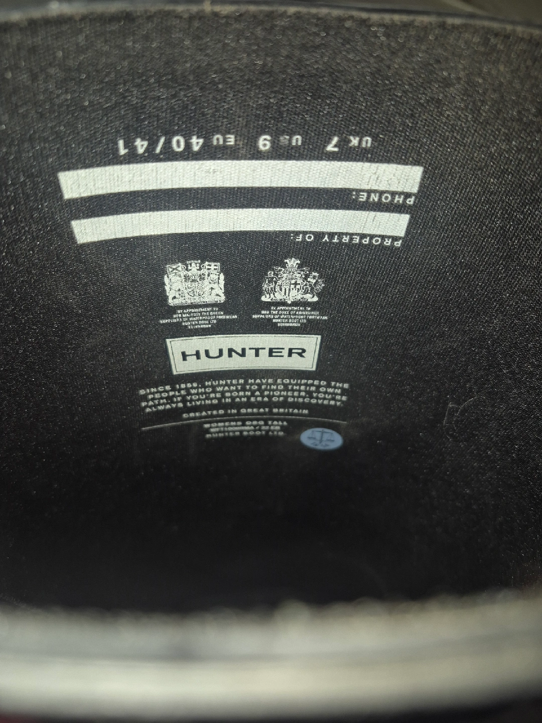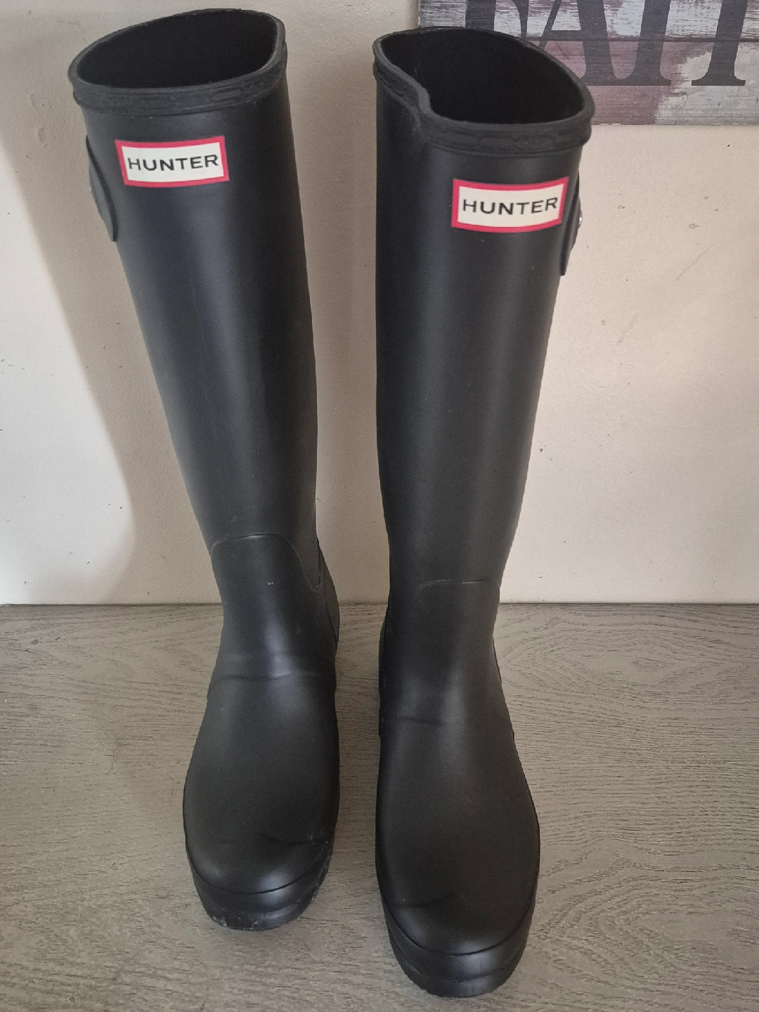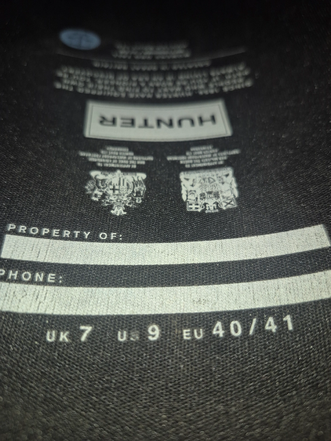 63Selling a pair of classic black Hunter rain boots in great condition! These are a size 9 (US) / 40-41 (EU) and are perfect for rainy days or muddy adventures. The iconic Hunter logo is featured on the front. Can fit size 8 womens when using Hunter Boot Sock Liners !