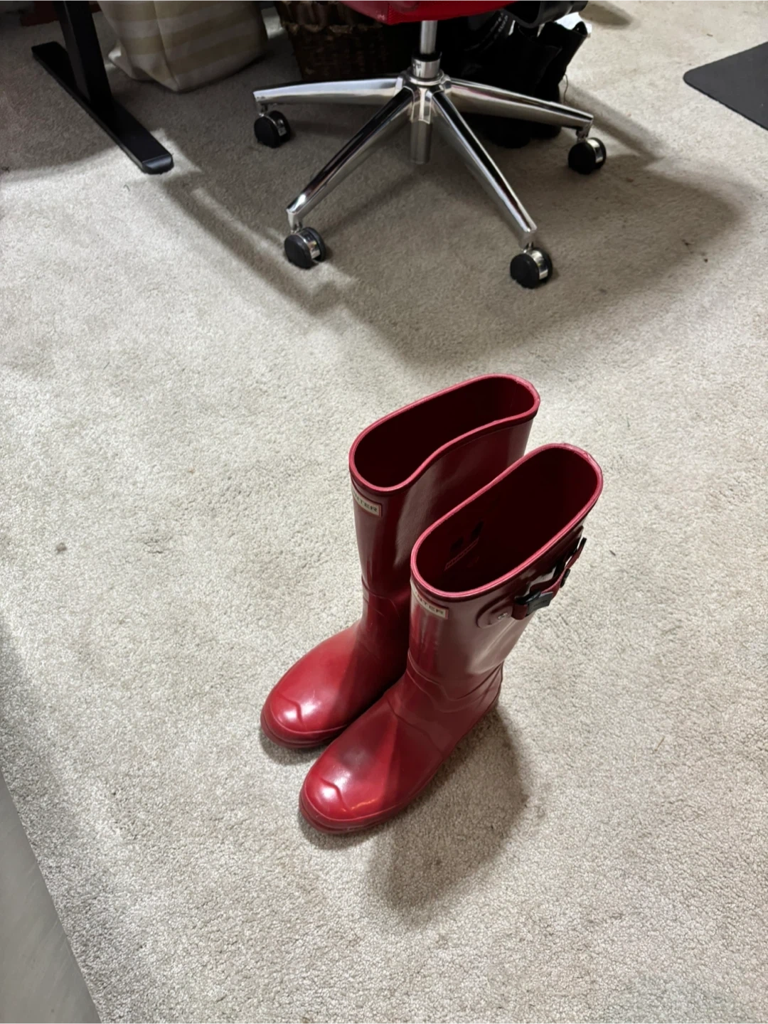 127Hunter rain boots in red! They're in great condition and ready for rainy days. Perfect for keeping your feet dry and stylish