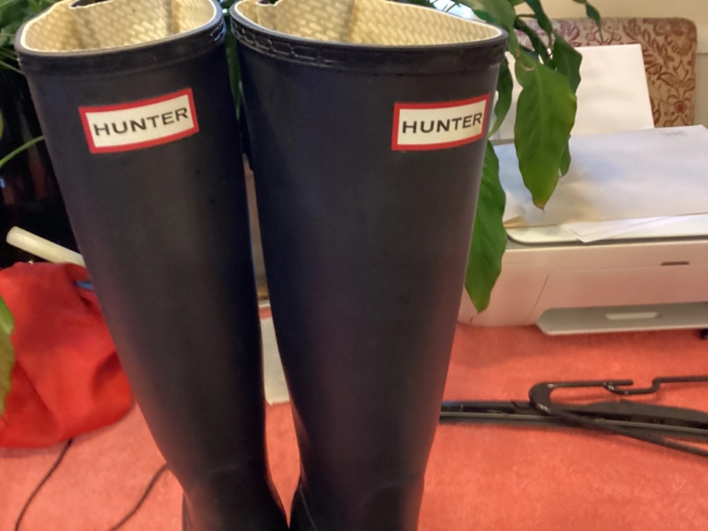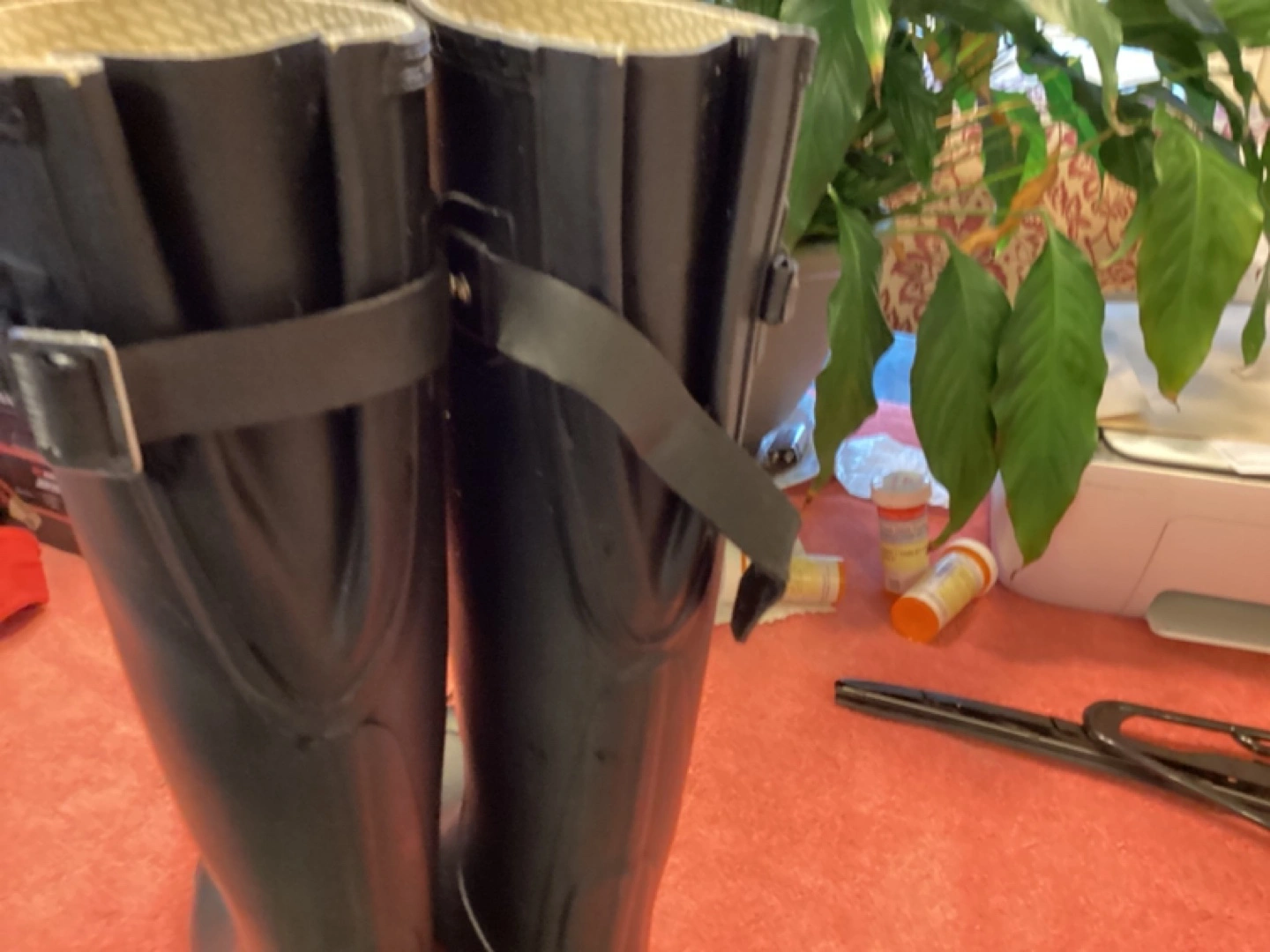 26Women's tall rain boots. Dark navy blue. Adjustable strap. Good condition. Size 7 1 strap needs to be fixed.