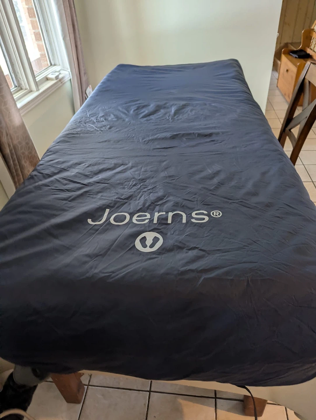 I am selling a very expensive low air loss alternating mattress (comes with a pump) for people who lie continuously in one position 24/7. Pictured above is it fully inflated on my mom's dining room table. As you can see it is in Like-New condition.