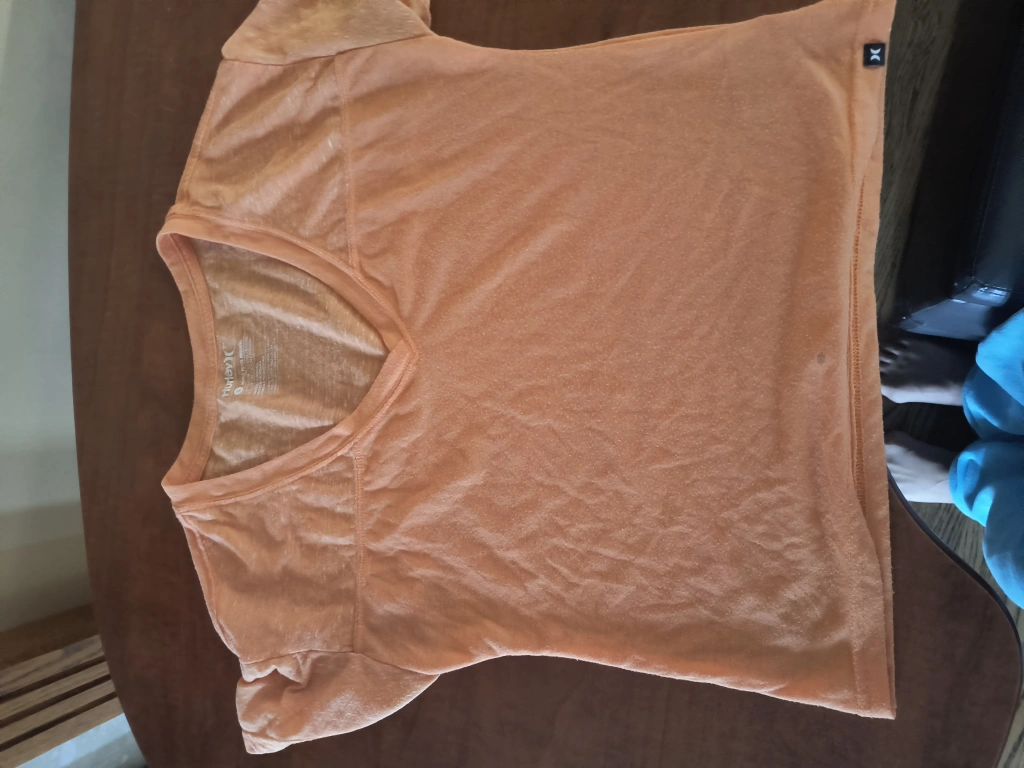 75A cute peach coloured t-shirt from Hurley! It's a size small and made of 70% polyester and 30% cotton