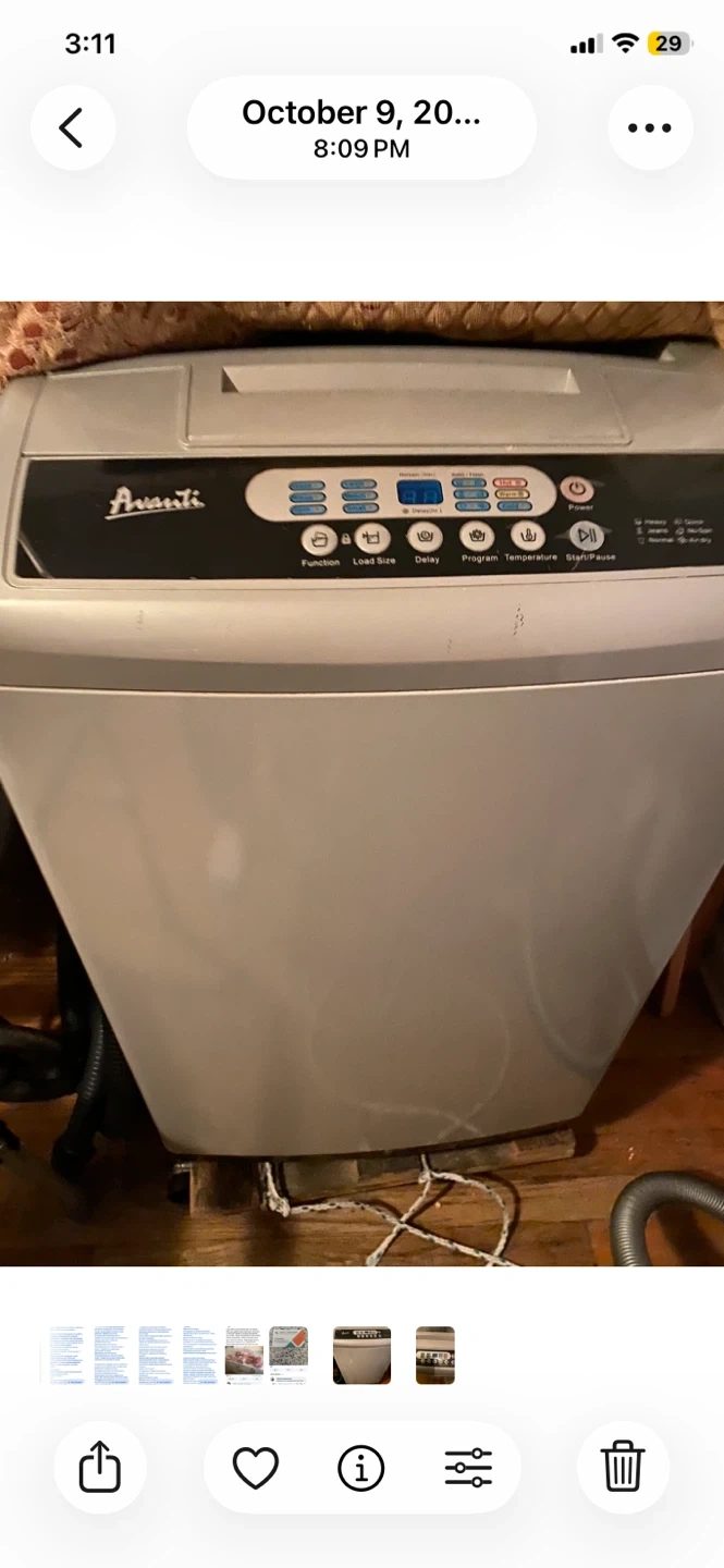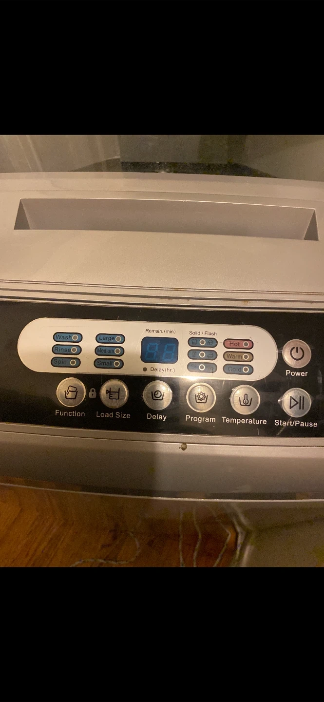 This is an Avanti washing machine. It has multiple settings for function, load size, delay, program, and temperature. Start or pause your wash cycle with the touch of a button!