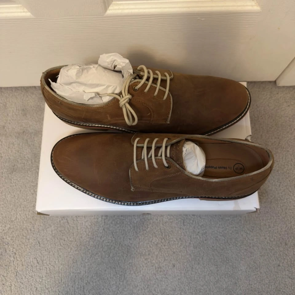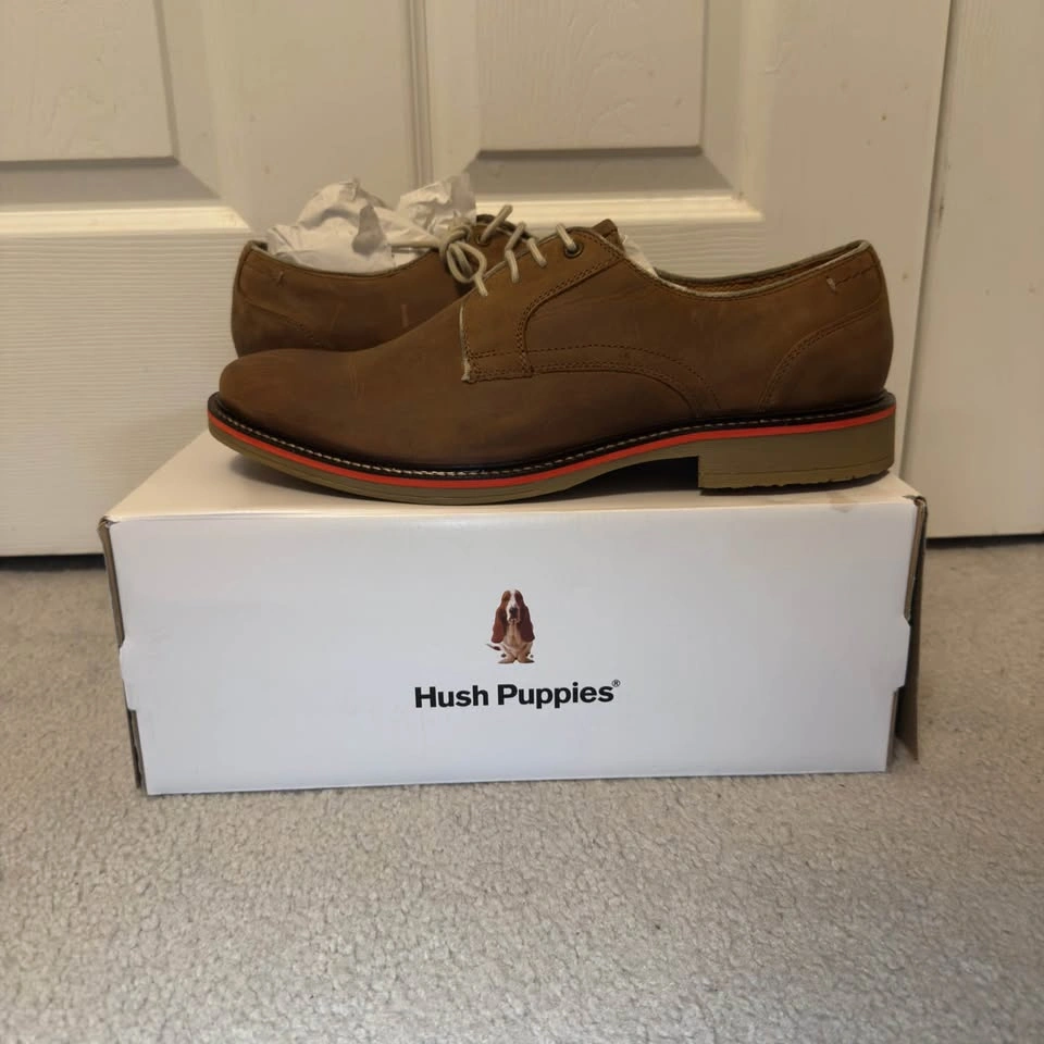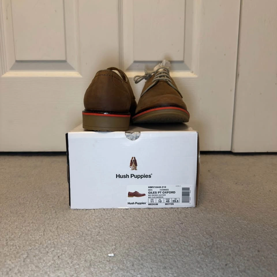 10Brand new Hush Puppies leather oxford shoes, size 9. Never worn, still in box. Premium comfort and stylish tan finish — perfect for work, formal events, or casual dressy looks.