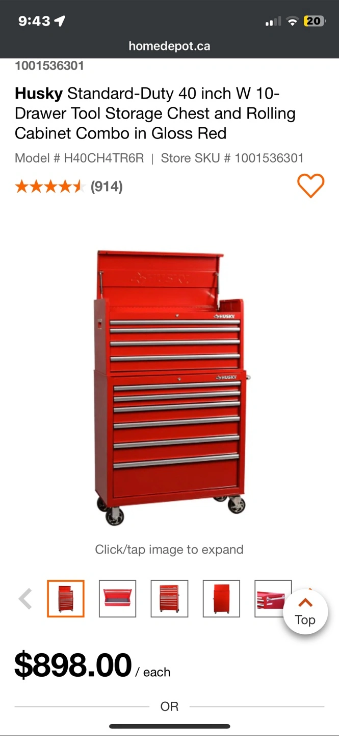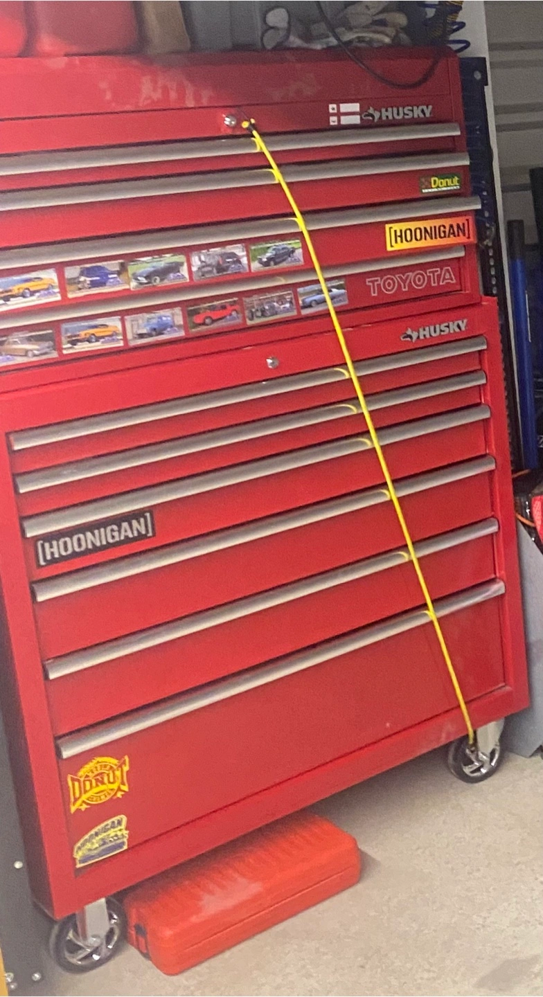 Selling a Husky 40-inch wide, 10-drawer tool storage chest and rolling cabinet combo in gloss red. It's a standard-duty tool chest, model # H40CH4TR6R needs a new top lock and can remove stickers and magnets before selling