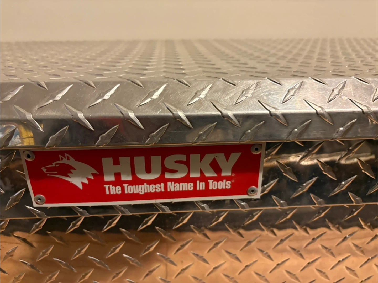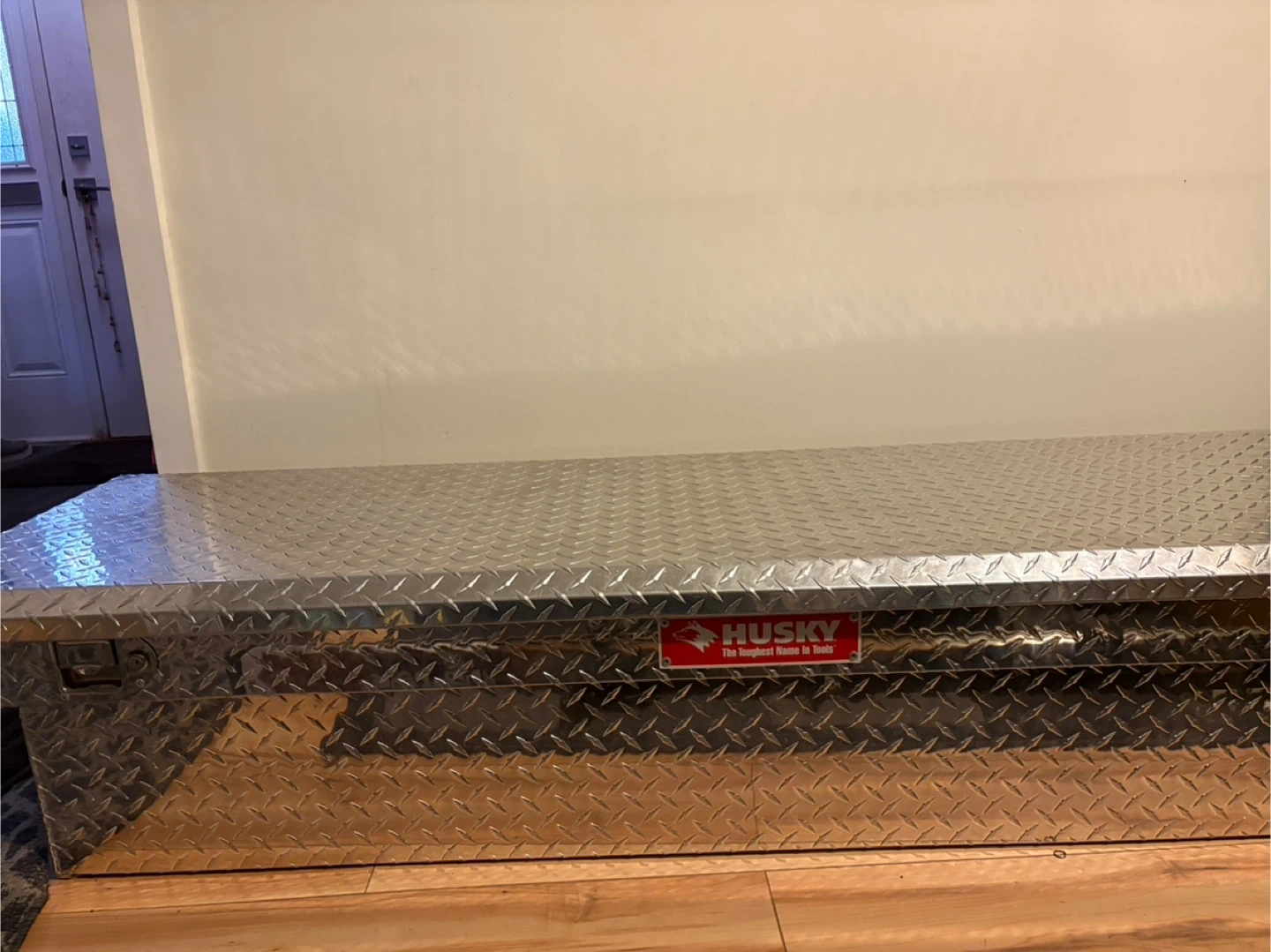 10Selling a Husky aluminum truck tool box. It's inevrr been used outdoors and ready to be put to work! The box is perfect for keeping your tools safe and secure in your truck bed. I was using indoors as storage for ski equipment Comes with lock and 2 keys