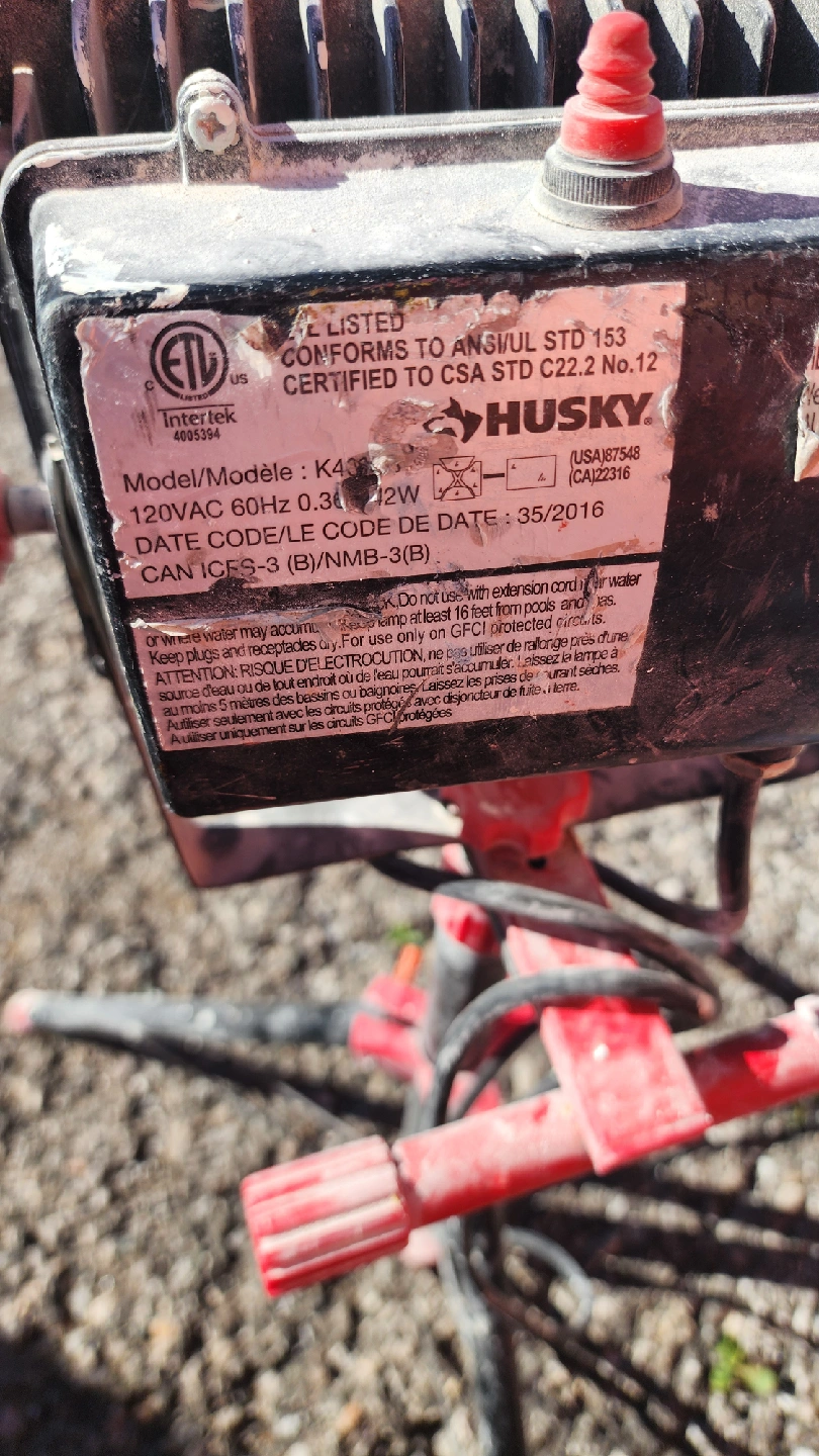 66Husky work light in used condition. Model/Modèle: K405394 120VAC 60Hz 0.3A 32W Date code: 35/2016