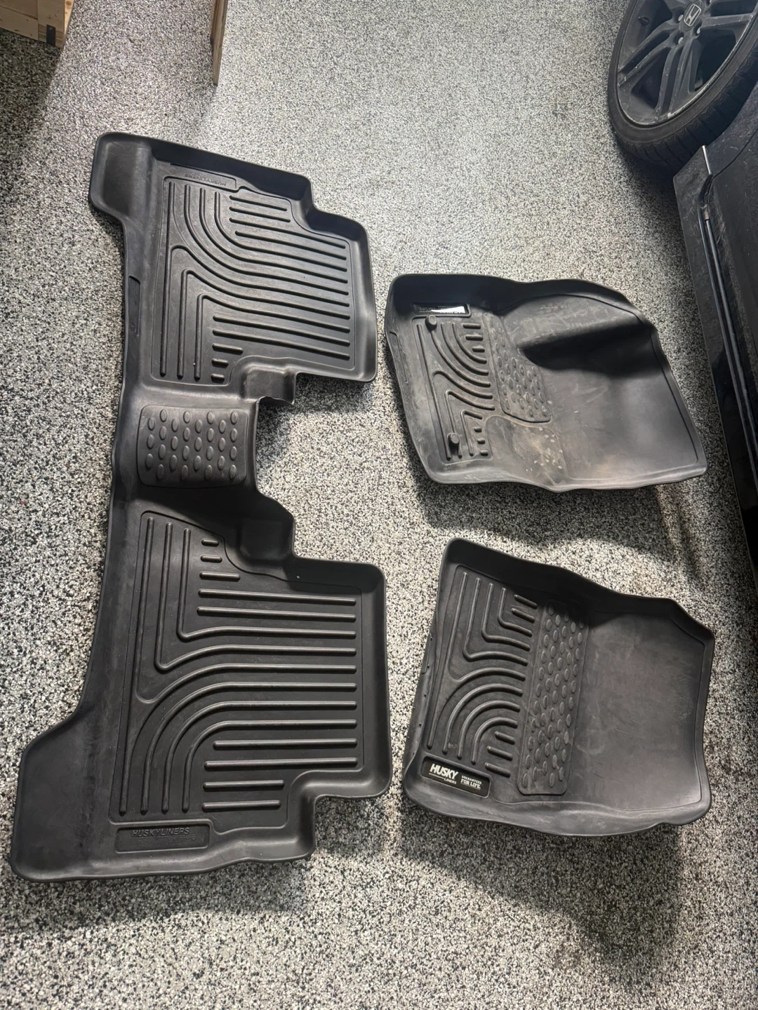 Selling a set of Husky Liners floor mats. They're black and designed to fit snugly in your vehicle, offering great protection from dirt and spills. These liners are guaranteed for life, so you know they're durable and reliable! Came off from Ford escape